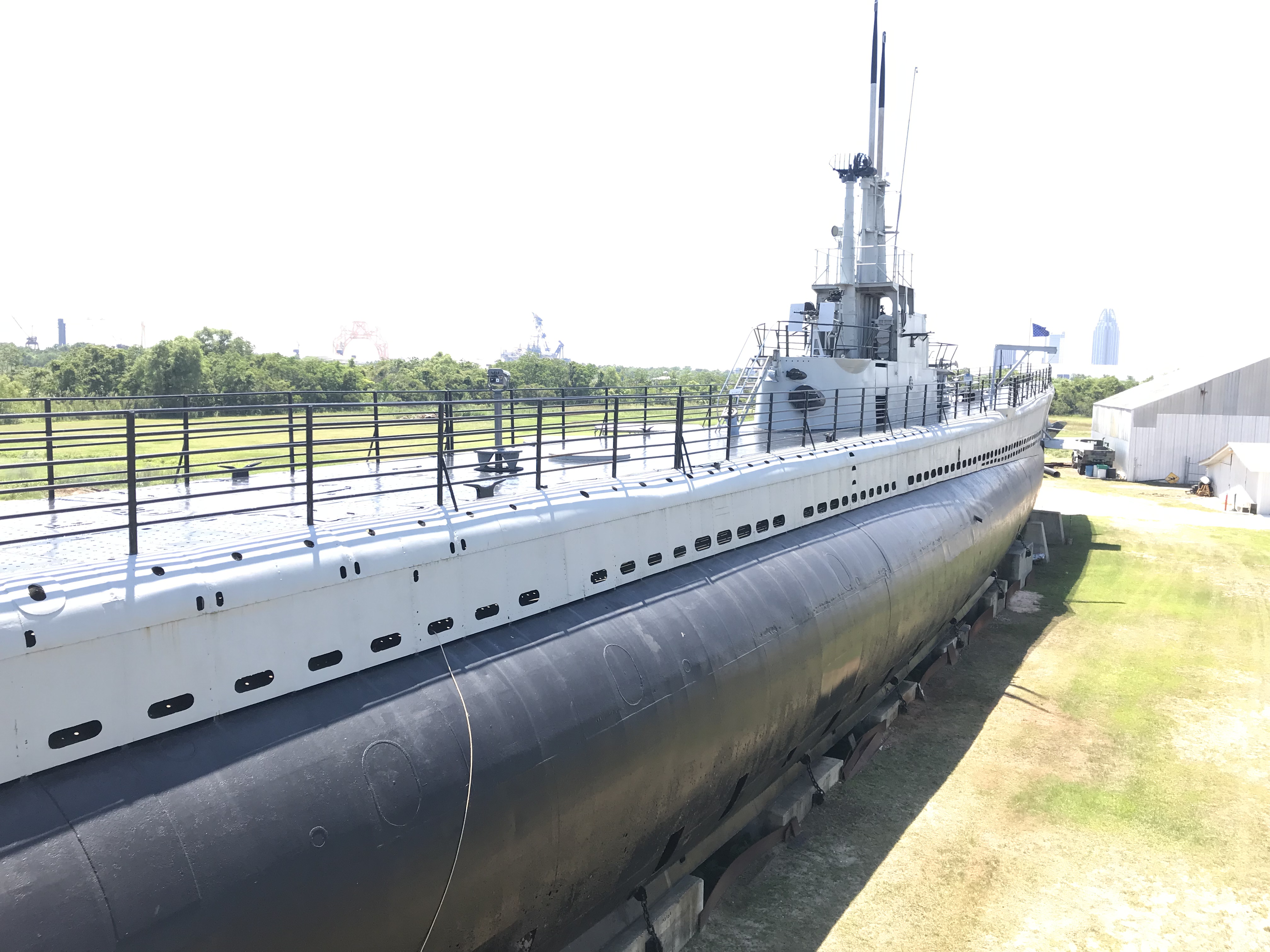 Aboard the USS Alabama, we walked the decks and climbed the steep ladders to the different levels. We sat in the gunners seat and tried to imagine what it must have been like to live aboard this ship. We spent several hours on board, much more than we anticipated. I don’t think we missed a thing . We saw the captains quarters, the mess hall, the kitchen, the bakery, the brig, the armory, the laundry, the engine room, and so much more.