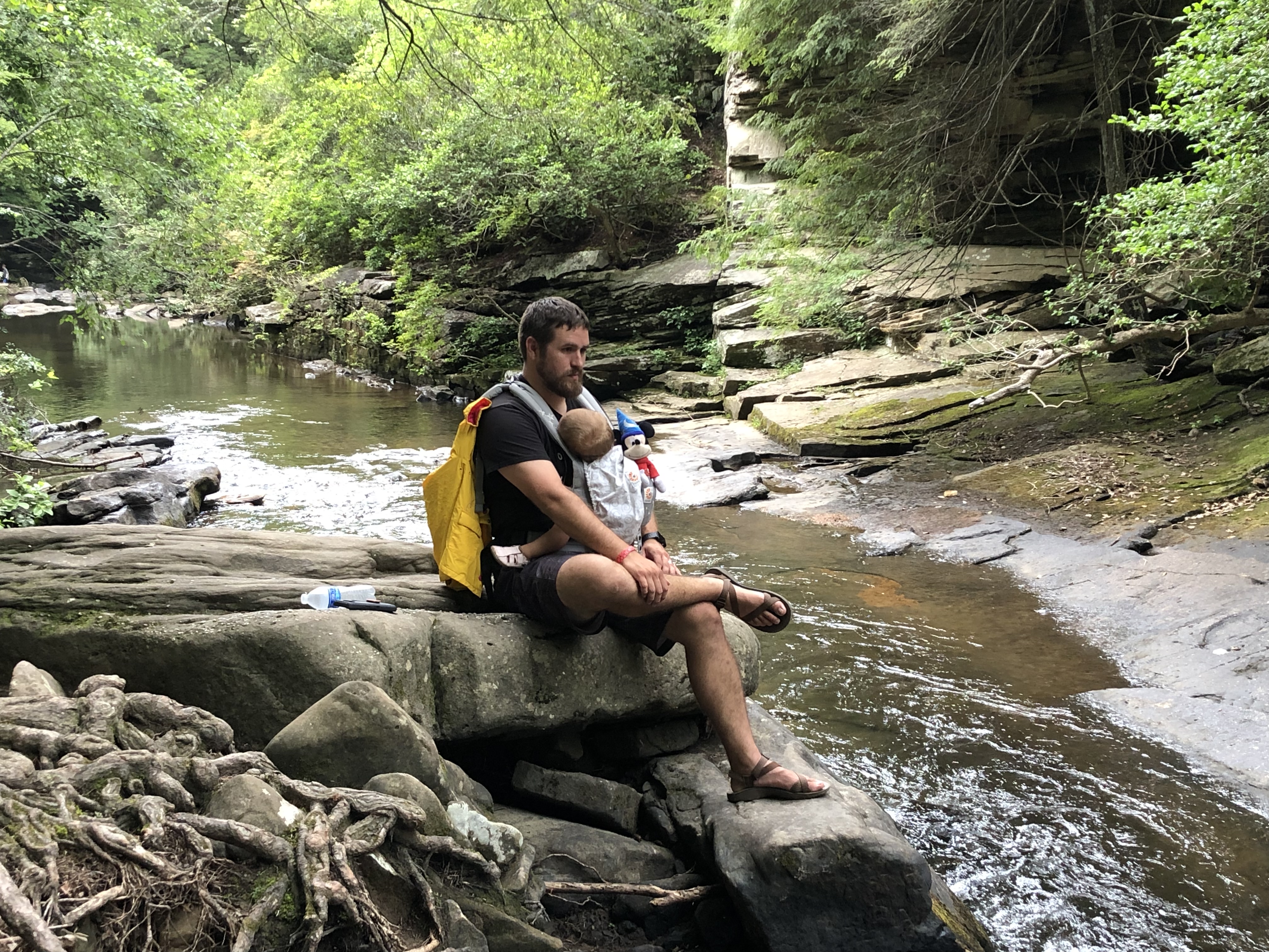 We spotted them sitting on an outstretched blanket in the shade. They were wearing bathing suits and were wet from playing in the creek. They were surprised to see us but Amber figured we used the app to “hunt her down”. Danny’s sister Holly and her husband Bryan were there visiting for the day too. They moved to Nashville a couple of years ago with the hope of boosting Bryan’s music career. He was singing a song to Ivy as we walked up.