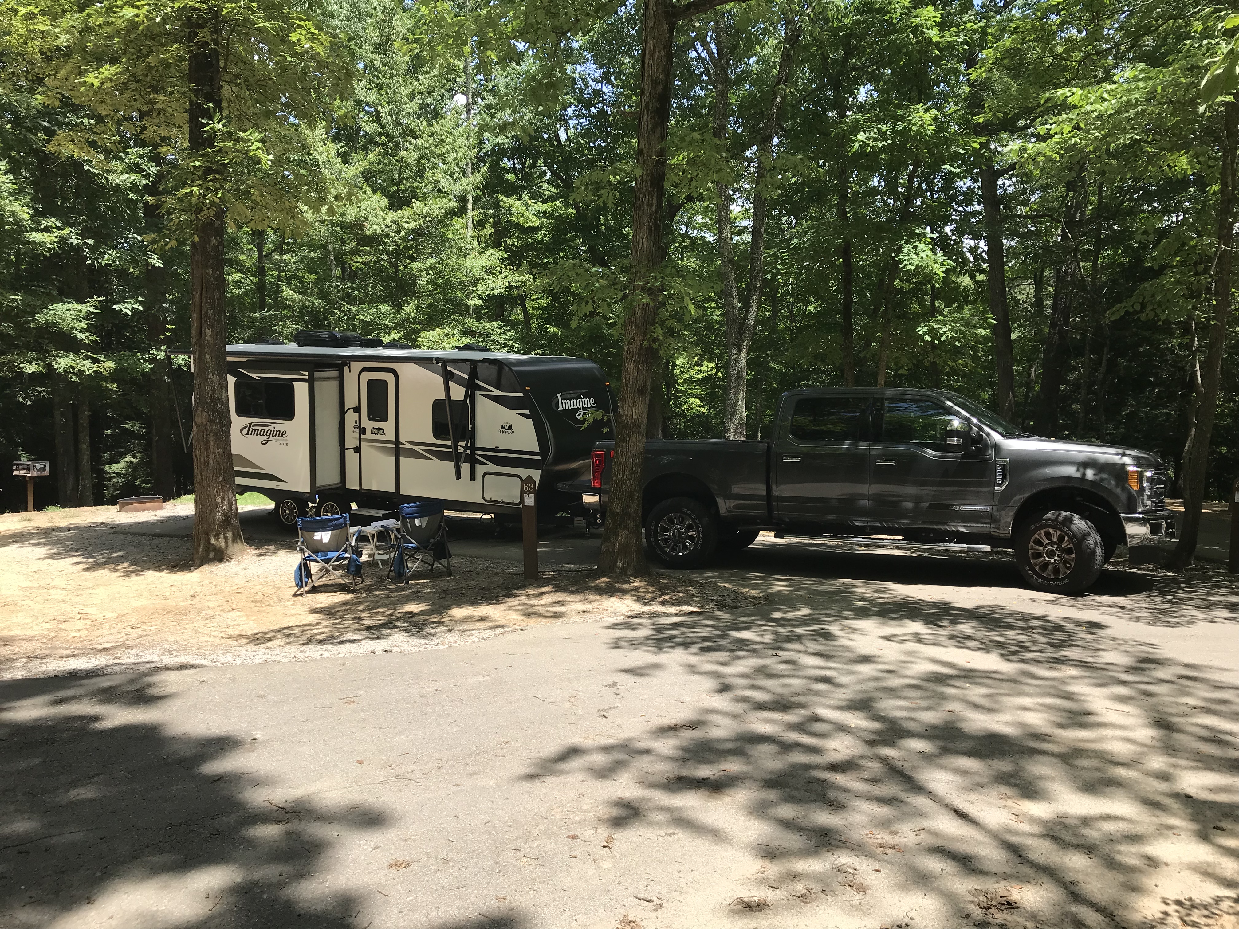 We moved our camper to site B53 this morning. A smaller site on a tight loop with a downhill and side to side slope, probably the most difficult site we’ve had to set up on so far. I still got it positioned right where grammi wanted on the third attempt. The couple in the camper next door barely got settled in their chairs before I made an announcement that the show was over. They didn’t even have time to make a bowl of popcorn.