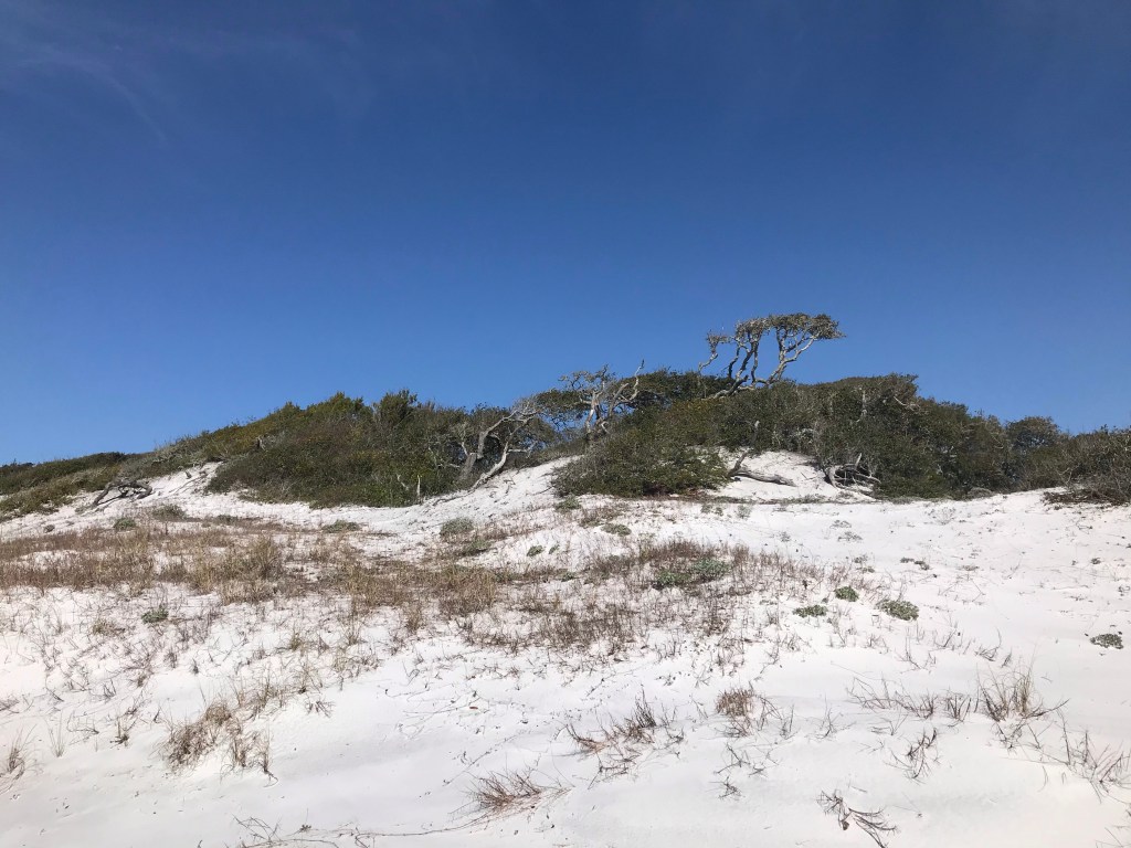 We saw a World War II gun turret base that was recently exposed during Hurricane Michael. It had been buried for years under the sand unknown to the park rangers. The shifting sands are again working to bury the structure and with time will hide it from future generations.