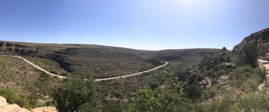 It’s a rare experience to have a national park all to yourself. On our early morning drive up to the cavern we stopped at every pullout and walked out to all the historic and scenic locations, never once passing another human. At the top we walked down to the entrance of the cavern where we saw the Amphitheater (more on that later). We drove the one-way 9.5 mile unpaved Desert Loop through Walnut Canyon again stopping at all the points of interest along the way.