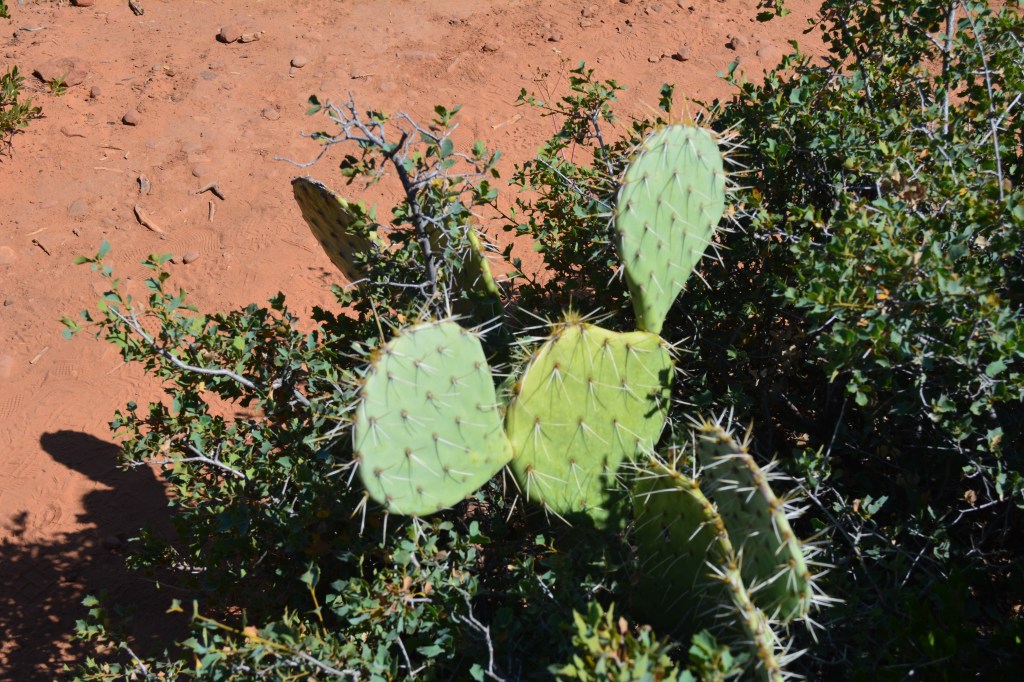Because we parked in the lower Devil’s Bridge Trail parking lot, we added an additional 2.4 miles to our overall hike. We began by hiking a portion of the Chuck Wagon Trail up to a point where a short side trail lead to Dry Creek Road. This was an easy, mostly level section through the juniper trees. Next we followed the road going toward the trailhead. Having no shade, this was the most unpleasant part of the hike. The combination of rocky road bed and soft powered red sand which was thrown into a dust cloud every time a four wheel vehicle passed made me regret not making the drive myself.