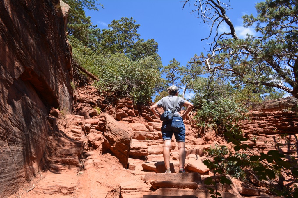 We sat on the rocks under the shade of a juniper tree for maybe 45 minutes or so admiring the site while eating our snacks and drinking our bottle of water. We chatted with some of the other people around finding out where they were from. As we looked around it occurred to us that we were the oldest people there. Glad to know we can still hang with the younger folks. We certainly weren’t the fastest climbers. but we made it just the same.