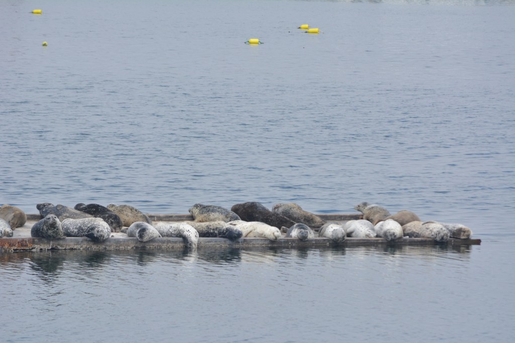 We drove along the beach after lunch, going up to Point St. George and walking through the dunes. We then drove south toward the harbor. We stopped and walked the beach for a while. Grammi said she could walk the beach for miles. I believe her. It took quite an effort to convince her we’d gone far enough and it was time to turn back. We drove past the lighthouse and stopped at the harbor where we saw more sea lions laying on a manmade platform about a 100 yards from the dock. There were so many that we were amused to watch them struggle for space on the platform.
