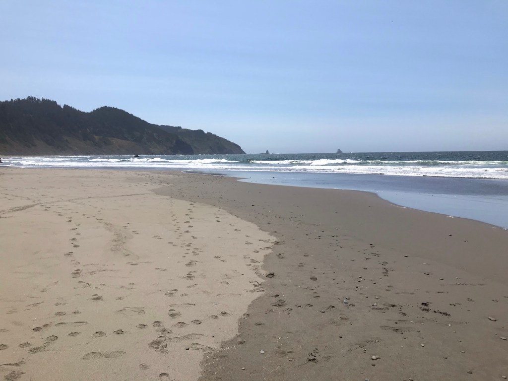 After getting a glimpse of the redwoods, we drove toward Crescent City and headed for the Pacific Ocean. I’d never seen the Pacific Ocean before and neither had grammi. We felt a sense of excitement. Finally, without fanfare, it came into view. We made it! We have driven across the country to the Pacific Ocean.
