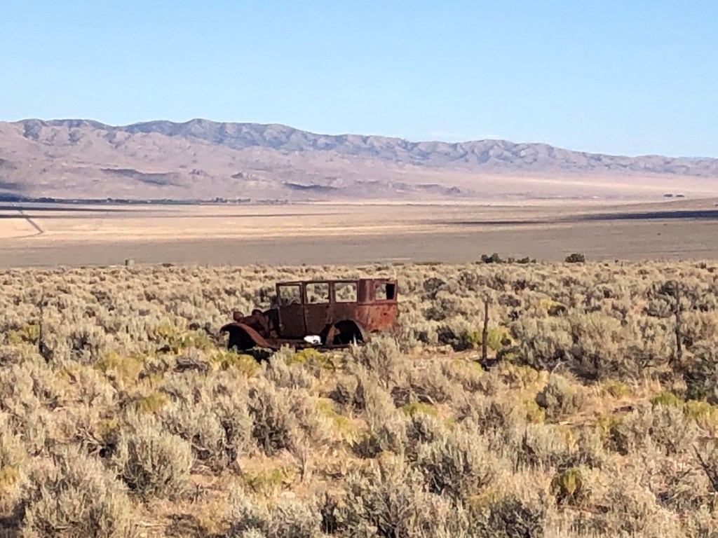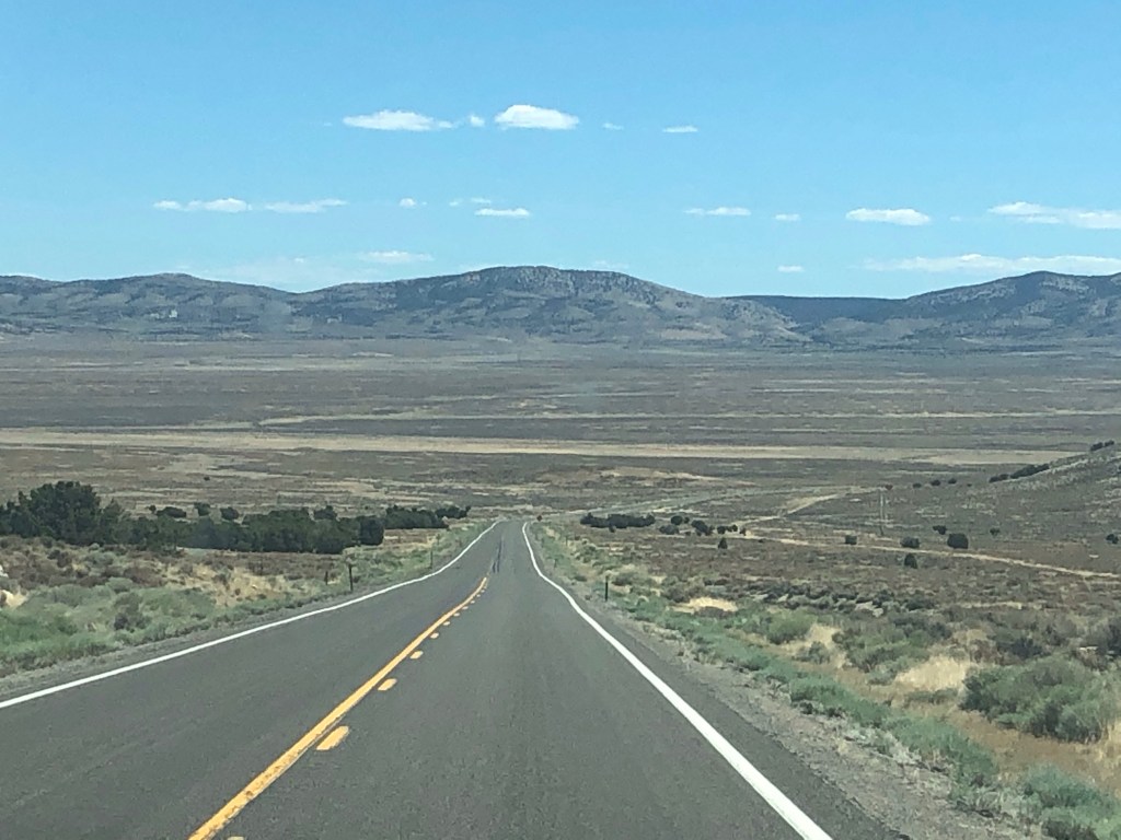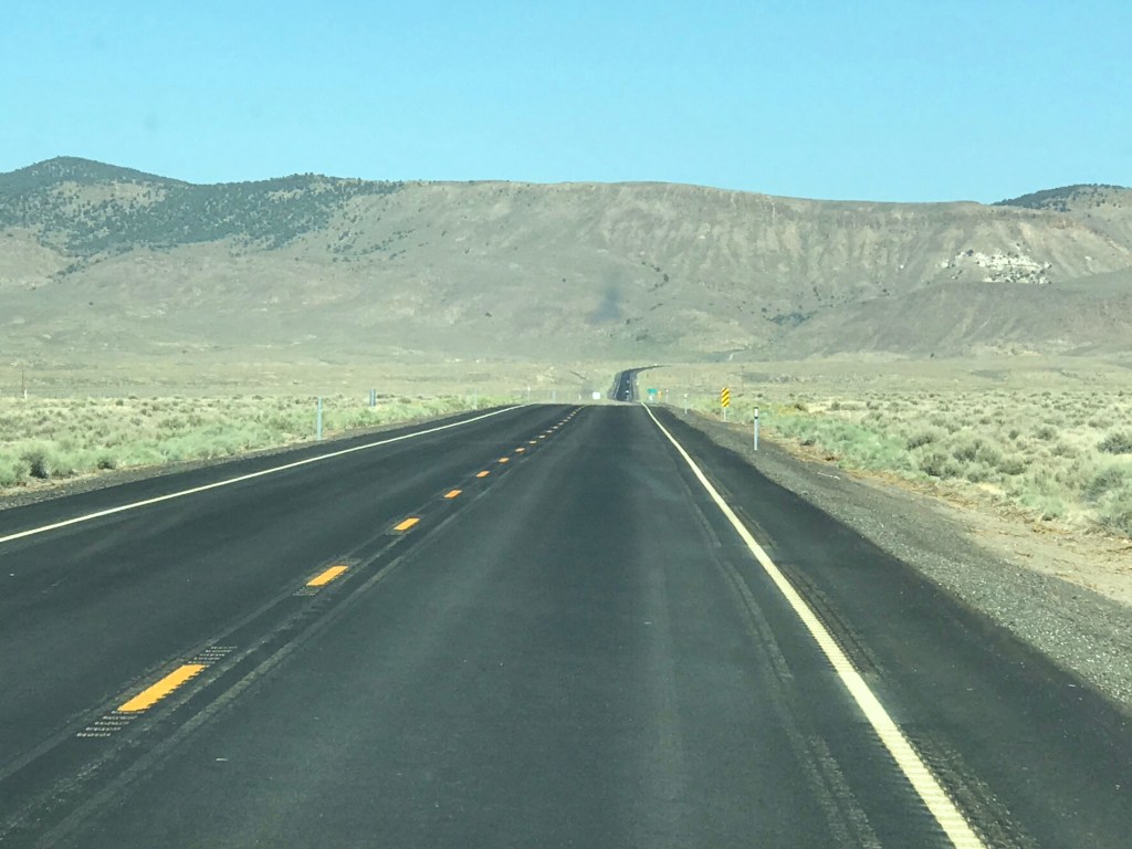 We drove across Route 50 in Nevada appropriately named The Loneliest Road in America. Crossing the middle of the state through a series of basins and mountain ranges, it roughly follows the old Pony Express route. The long straight road often disappears into a vanishing point far off in the distance. Seeing little more than sand, sagebrush and blue skies, it’s a tedious drive.
