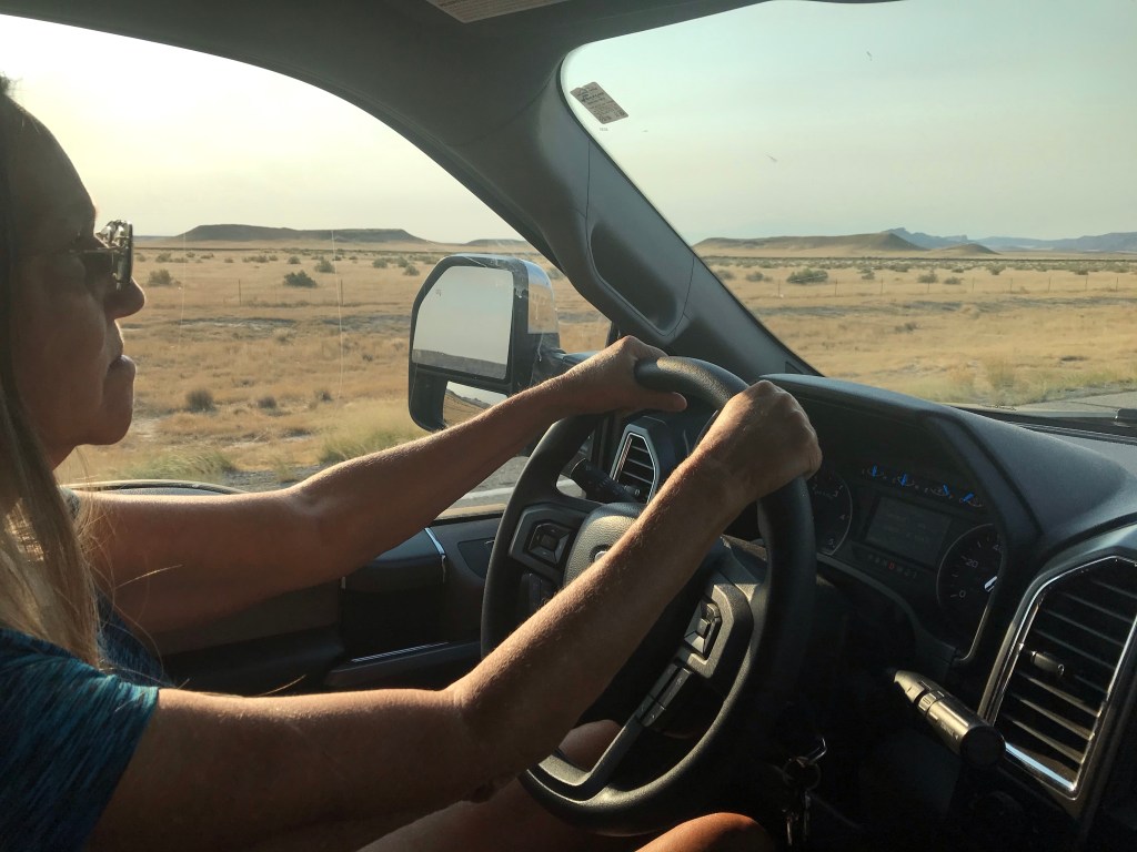 She started slowly, getting the feel of the extra weight. Realizing the truck has more than enough power to tow our camper, she quickly gained confidence. “I don’t notice it back there at all” she said, as we gained speed. It was a welcome break for me and I enjoyed looking out into the desert. I saw a herd of wild horses in the distance.