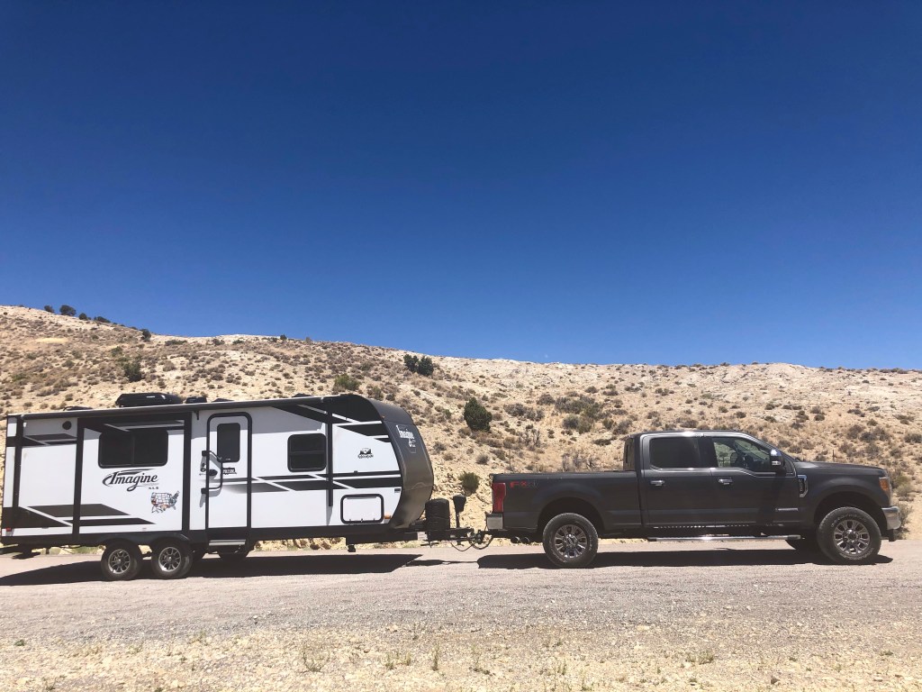 I felt this was the perfect opportunity for grammi to finally tow the camper. All the miles we’ve traveled and not once has she driven with the trailer in tow. She was eager to give it a try so I pulled over and gave up the steering wheel.