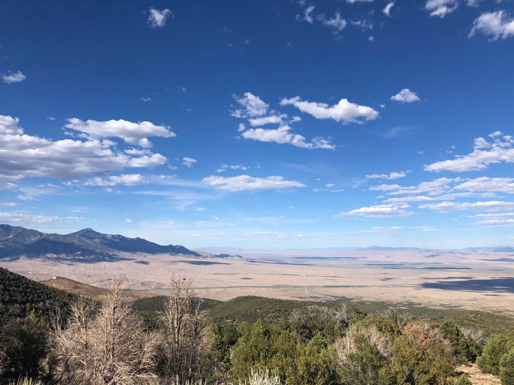 The next day’s drive was more of the same. We finally turned off Route 50 onto 487, where we came to the small town of Baker. Located near the entrance of Great Basin National Park it was an ideal location for us to find a campground. Our options were limited with only two campgrounds in town. We stayed at the Whispering Elms Motel and RV Park. Nothing fancy but there was full hookups and cell service, albeit slow. Despite my best effort to stay longer, we were only able to book the site for two nights. We may have found a first-come, first-serve site in the national park big enough for us, but we just settled for the two nights.