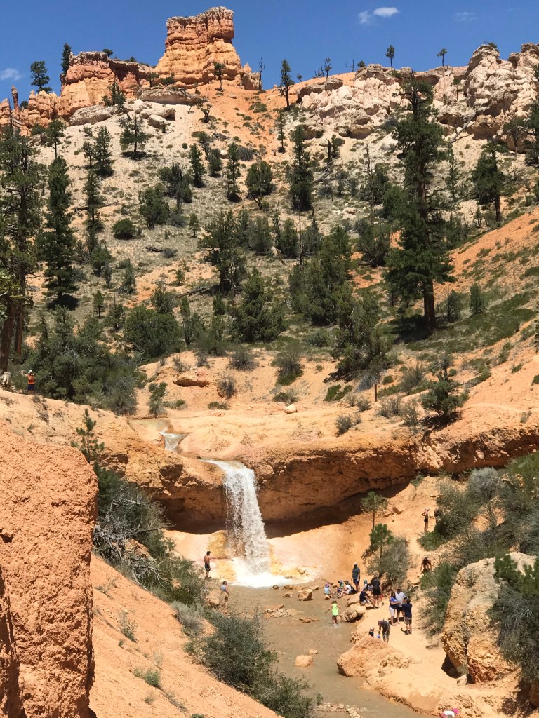 This is a beautiful place. A stream cascading over the rocks. Water falling into an inviting pool. Hoodoos and a scenic arch towers above. It’s worth a stop to take a look. However, it’s a very popular location. Because it’s an easy hike for young and old alike, it attracts large crowds. We were there in the middle of the afternoon when there were lots of children running and splashing around. Parents were screaming in a futile attempt to control their excited kids. I would rather find a more remote waterfall hidden deep within an undisturbed canyon surrounded by nature. I’m not sure where that may be nowadays, but it is a pleasant thought.