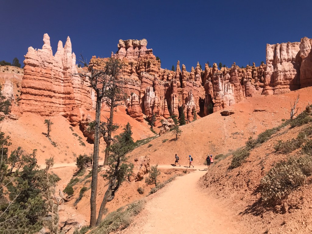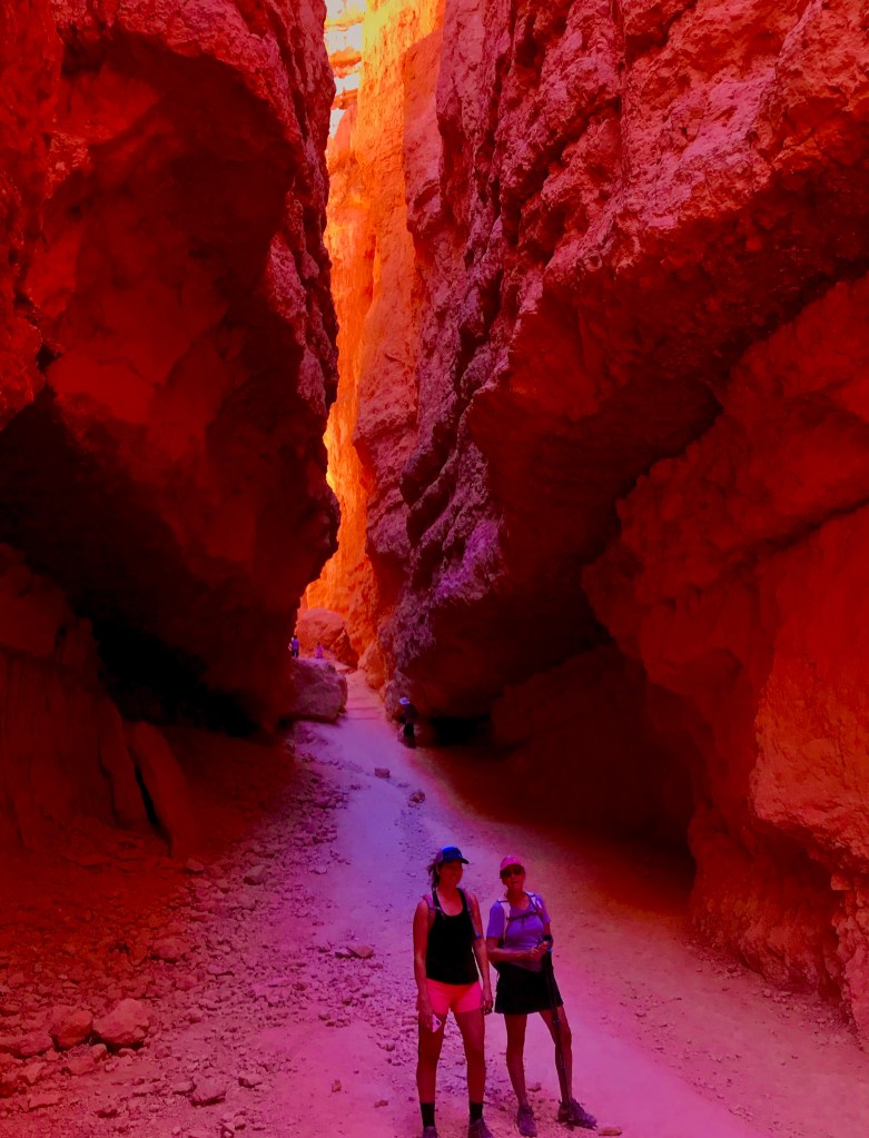 This has to be one of my all-time favorite hikes. We talked about this very thing as we were walking between the hoodoos, when I asked, “What do you girls think? Is this our favorite hike?” We’ve done some fantastic hikes in the past, so I knew this would be a difficult question. Shanna talked about her hike down to the bottom of the Grand Canyon and another hike with her sister in Hawaii when they went down into a volcano. I brought up the hikes we did in Zermatt, Switzerland on the slopes near the Matterhorn and the Glendalough White Trail hike in Wicklow Mountains National Park, Ireland. Grammi mentioned our hike in Montserrat near Barcelona, Spain and the hike in Zion National Park to Observation Point. All memorable hikes and I think this hike in Bryce Canyon will be just as memorable.