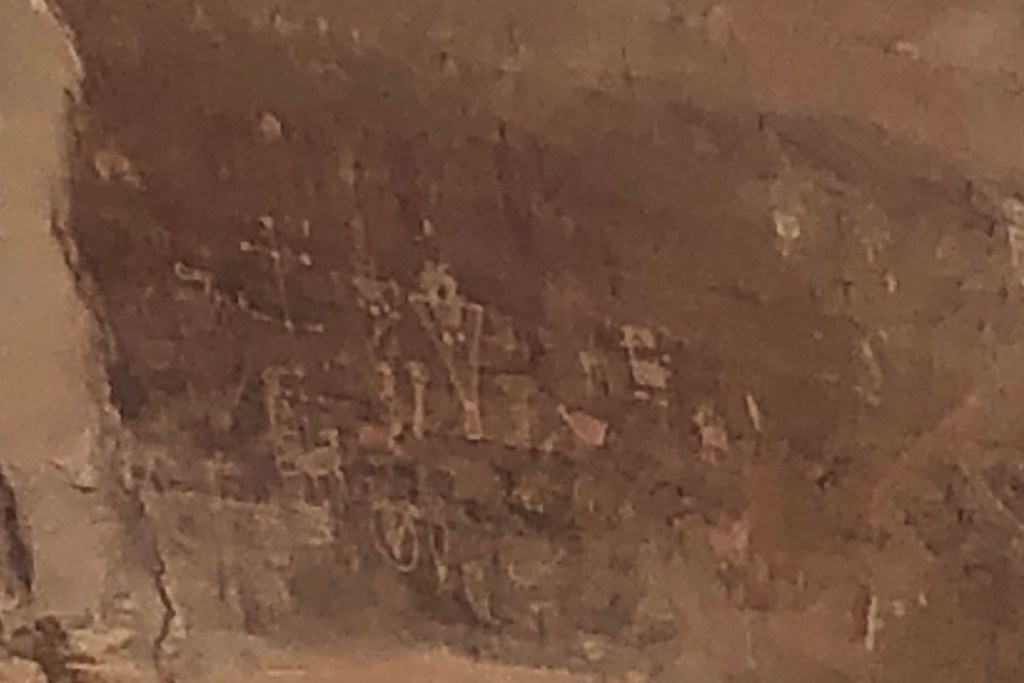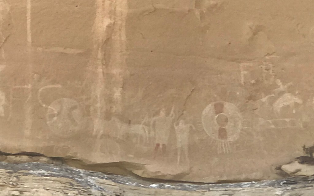 The receptionist at the RV park was very friendly. When we checked in she gave us a packet of information that included several nearby points of interest and scenic drives. She pointed to some of her favorites. We explored one of those recommendations on day one. The Thompson and Sego Canyons are located north of Thompson Springs on BLM159. It’s where many ancient Native American petroglyphs can be found. According to information from scienceviews.com (there is a link at the end of this blog) the petroglyphs in the canyon are examples of three distinctly different styles from different time periods.