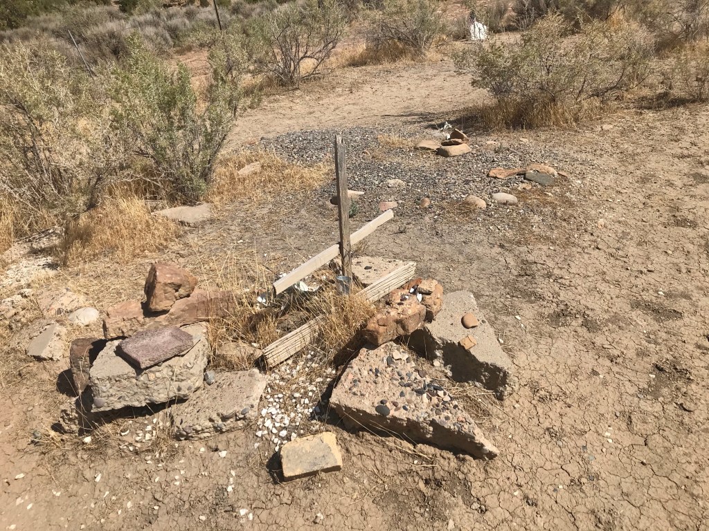 As we drove back out of the canyon, we spotted an old cemetery and had to stop to take a look. It’s a small fenced plot with mostly unmarked graves surrounded by beautiful craggy desert mountain slopes, but yet it’s a somber place. Lost souls, long forgotten, perhaps safeguarding a ghost town also long forgotten in a sacred holy canyon. It’s sobering to think of the thousands of years of history and the many people, both Native American and European settlers, who lived and died here.