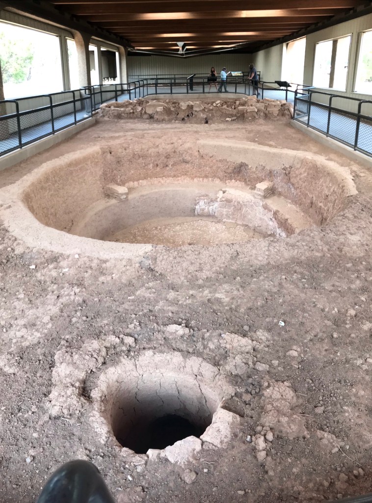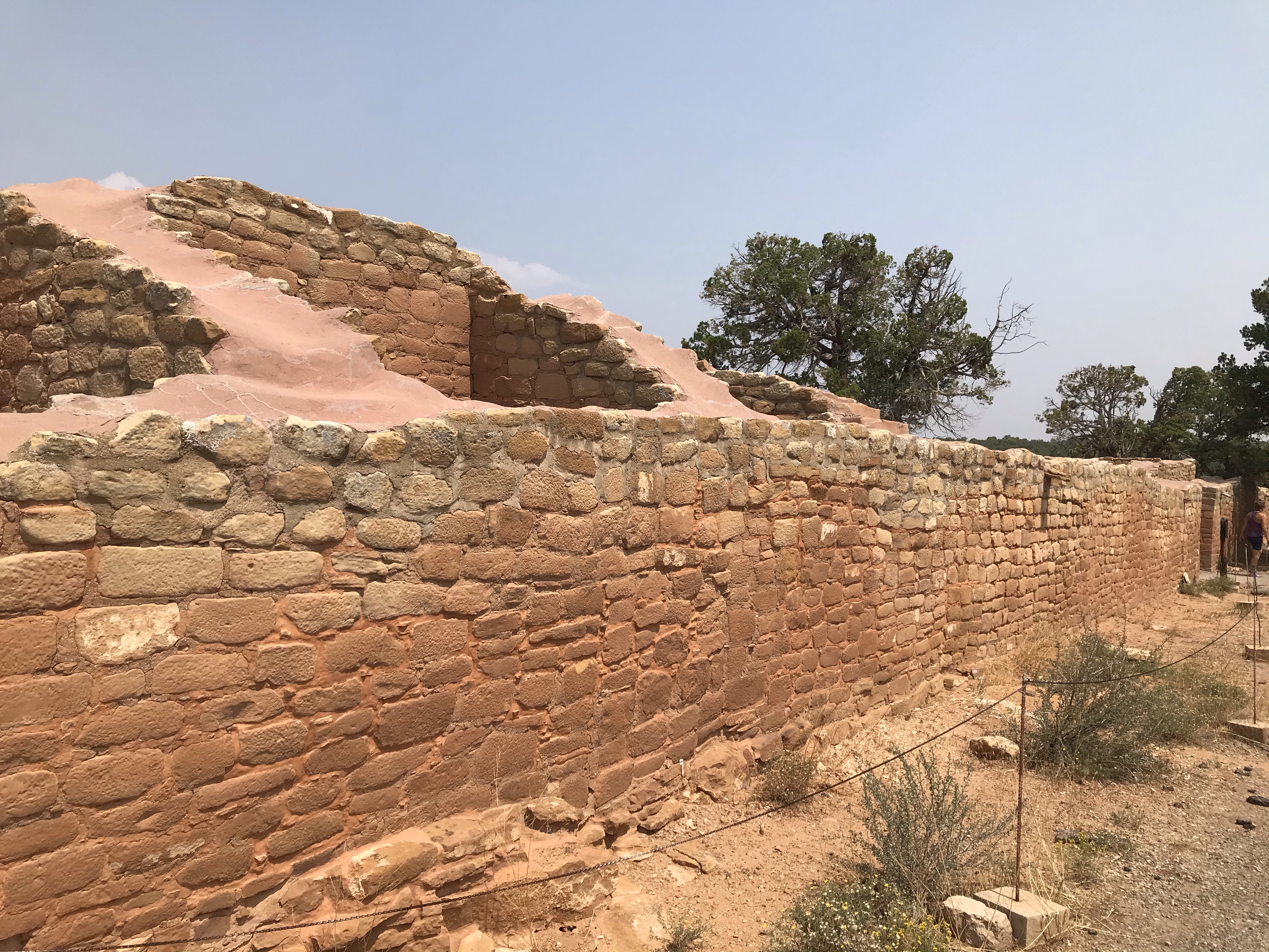 We stopped to see the pit houses excavated and preserved with modern roof structures. The pictures I took don’t really show the intricacies or dimensional details. We saw the Sun Temple built atop the mesa. The purpose of the D-shaped structure remains a mystery to scientist.