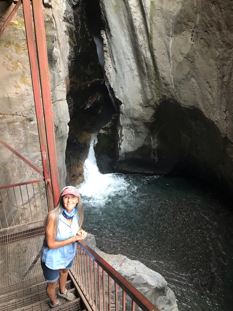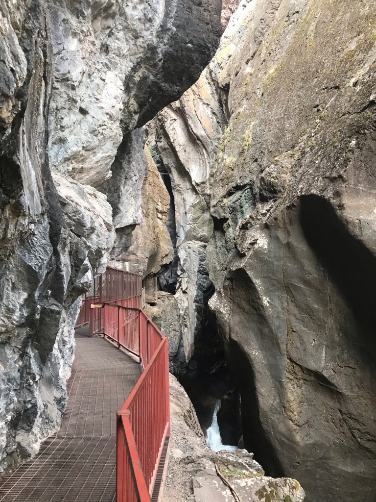 One of the unique attractions in Ouray is Box Canyon Falls and is where we began our first days adventure. There’s a small fee of $5.00 to enter this city operated park. Once inside, we walked the Falls Trail to a metal walkway weaving through a narrow slot canyon taking us to the base of the waterfall. The temperature dropped noticeably and a thunderous sound echoed through the canyon. A torrent of water pushing through a crevice plummets 85 feet before cascading further down the mountain. You can only catch a glimpse of the falls as it’s behind the rock walls of the crevice, but you can hear and feel it’s power.
