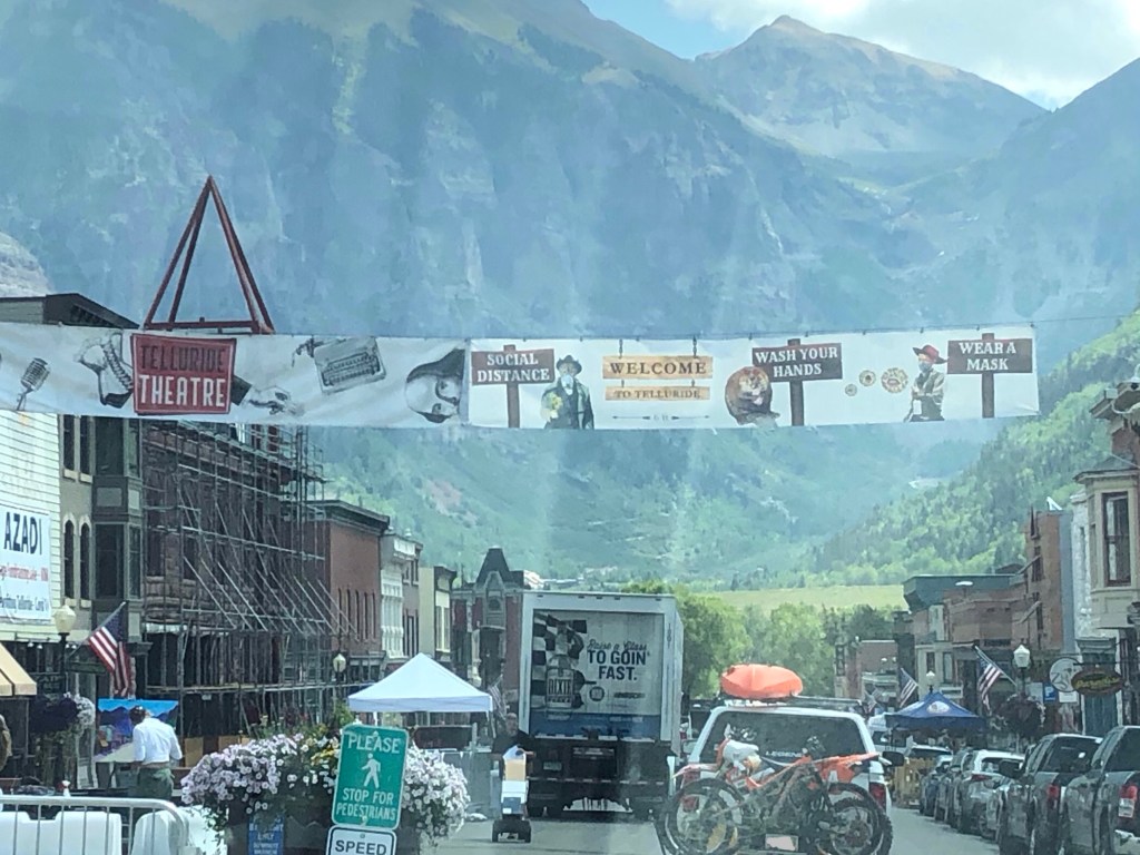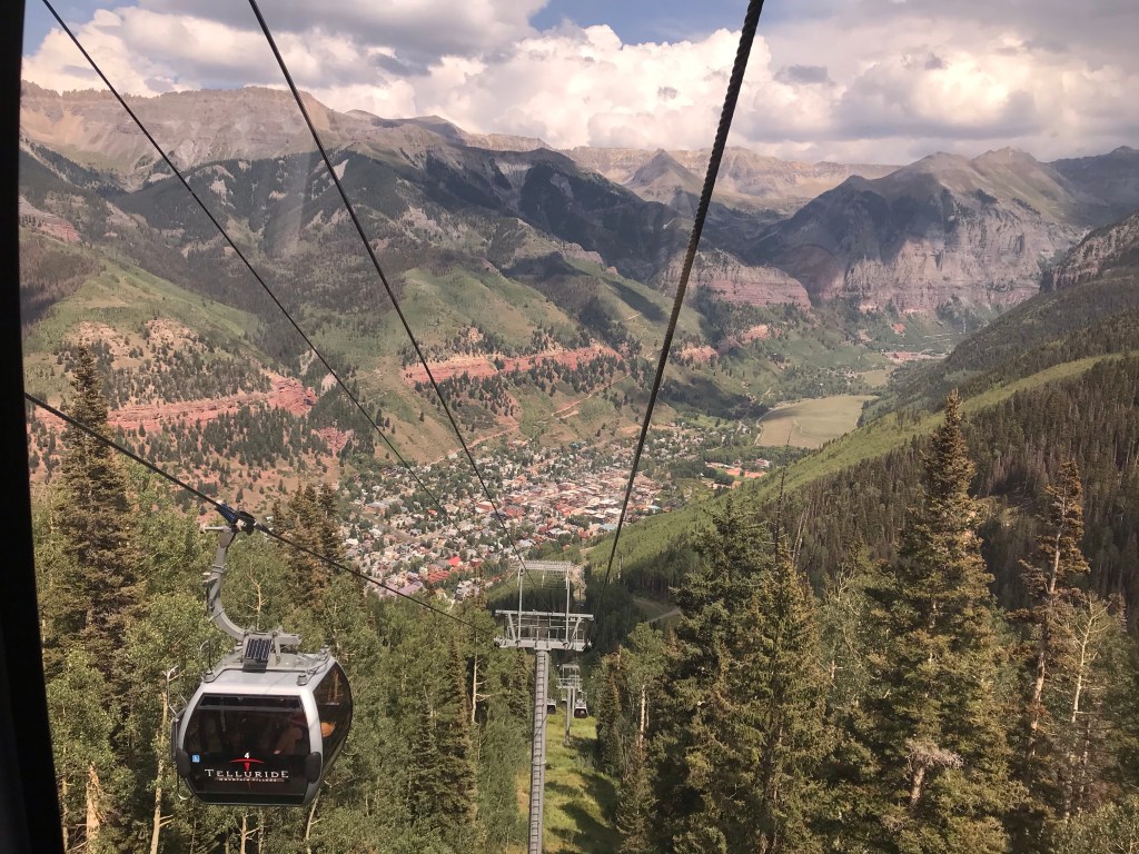 We rode a gondola up to the modern community of Mountain Village. It’s a free 13 minute ride over a 10,500 feet mountain that helps to reduce the traffic between the two communities. In Mountain Village’s town square was a weekly market with arts and craft booths. Good timing on our part. A live band was playing some familiar songs creating a festive vibe. There was an array of food venders and an abundance of tables for dining. We found an open table and ate lunch while singing along to Peter, Paul and Mary’s “Puff the Magic Dragon”. Can it get any better? Well maybe…keep reading.
