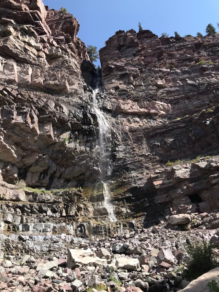 The next day, once again, we went to Ouray where we hiked to the Lower Cascade Falls. There we found a spot to sit and listen to the sound of the water splashing off the rocks. We made conversation with people as they came to see the falls, “Good morning, beautiful day isn’t it?”, “This sure is a beautiful waterfalls, don’t you agree?”, “Hi, where are y’all from?” It amazes me how friendly and open people can be in a relaxed, natural outdoor environment. We learn so much about different places and things to do during our conversations.