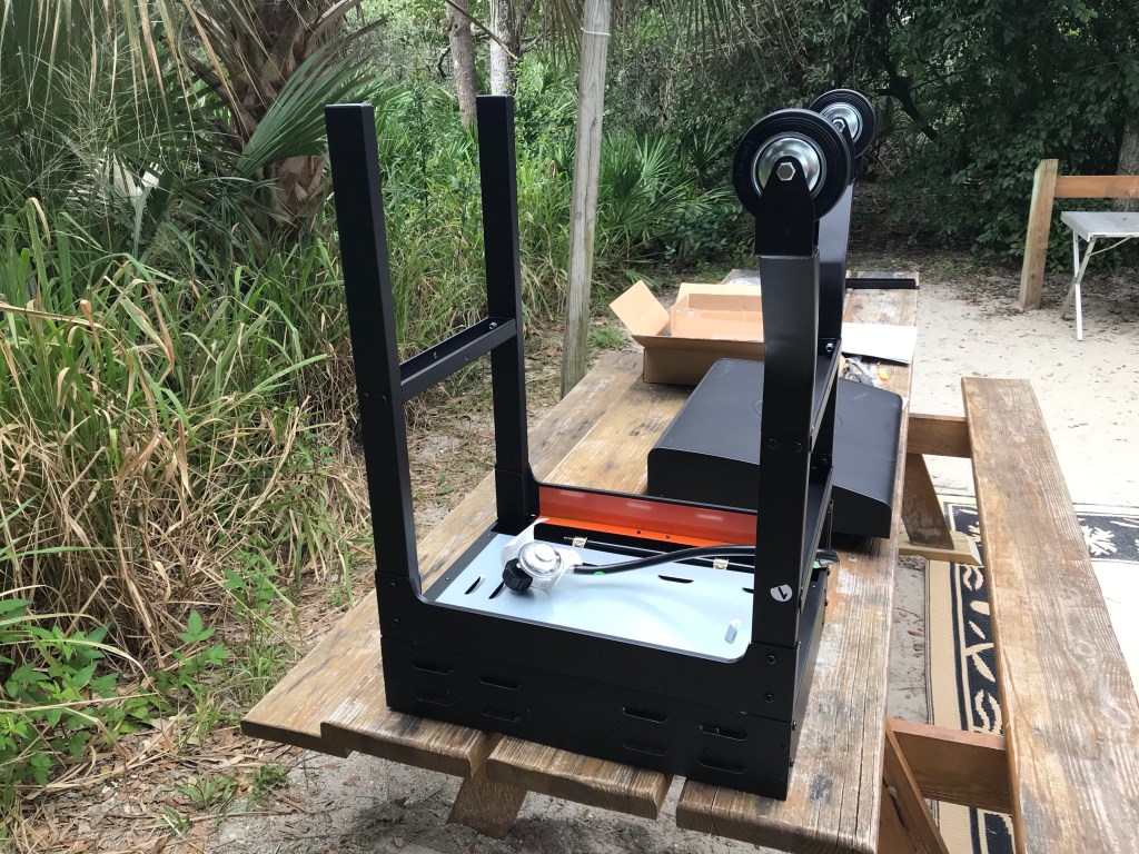 Once we were back at the campsite, I began unboxing all the parts. Now let it be known that when I was younger and smarter [wink], I didn’t need to read the directions. Now however, I must carefully follow all the assembly directions. It took about an hour to get it put together. Luckily, I didn’t have any extra parts left over.