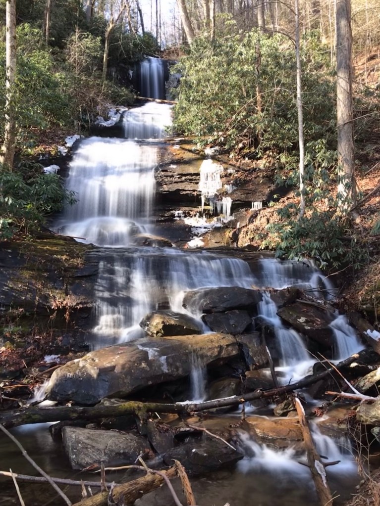 Driving the 2.2 mile narrow gravel road to Helton Falls is part of the adventure when visiting this falls. There is not much parking and traffic jams are common during busy times. It’s a short hike to a stunning two tiered falls dropping more than 100 feet. Wooden observation decks provide easy access for viewing. This was my favorite waterfall out of the three we saw this week.