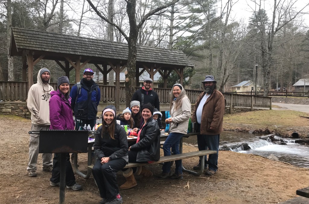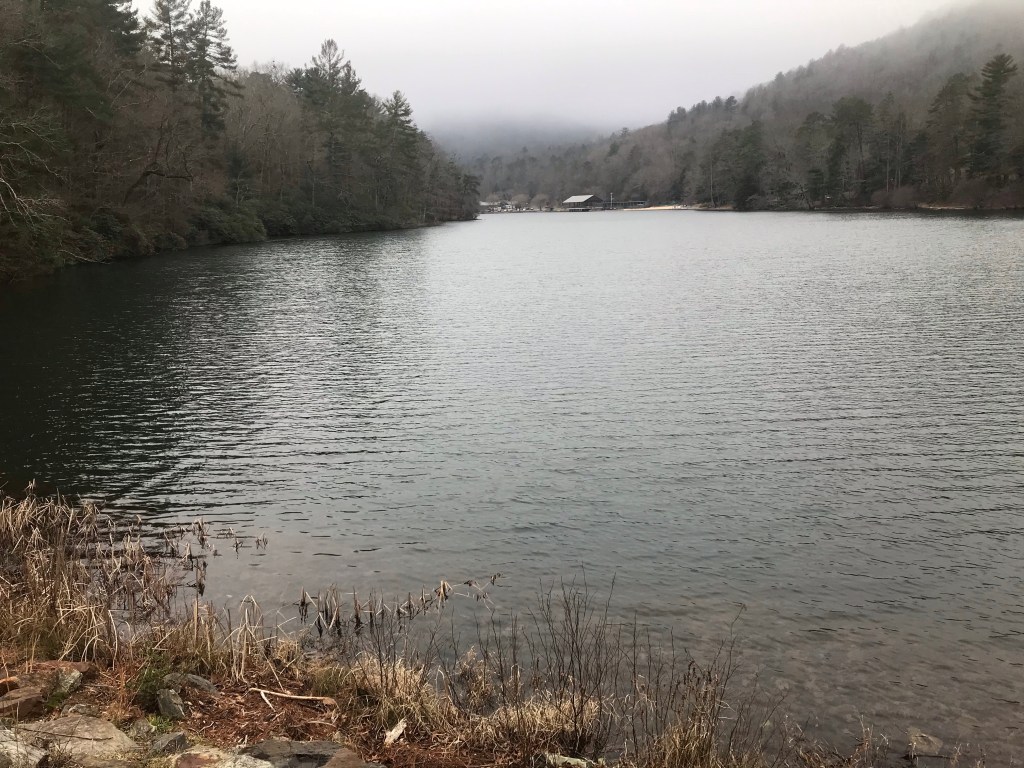 We braved the elements to have a picnic lunch at Vogel State Park. Hot chocolates purchased from the camp store helped to warm our insides, but the highlight of our visit was a hike around Trahlyta Lake. The 20-acre reservoir built by the Civilian Conservation Corps in the 1930’s is the center-piece to the park.
