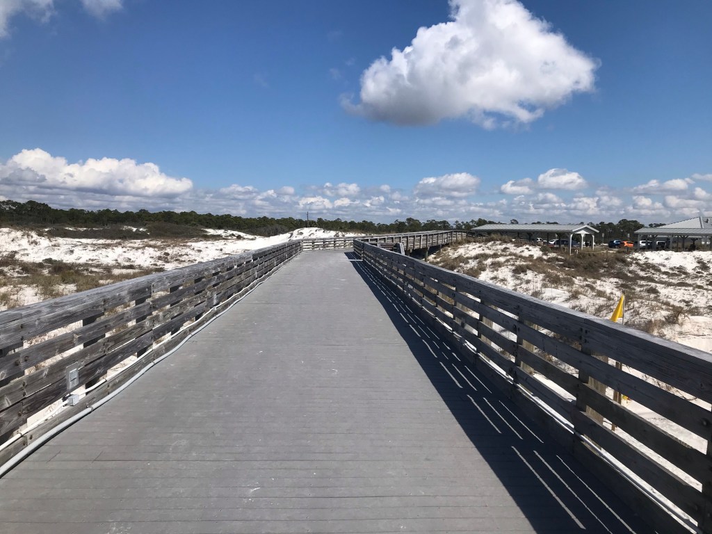 We walked the beach and drove through the campground. Grammi and I camped there last year. You can read about that by following the link here. Not much has changed from last year. Part of the campground remains closed from damage received from Hurricane Michael. One thing that has changed is the WWII gun turret base unearthed by the hurricane has since been reburied during beach reclamation.
