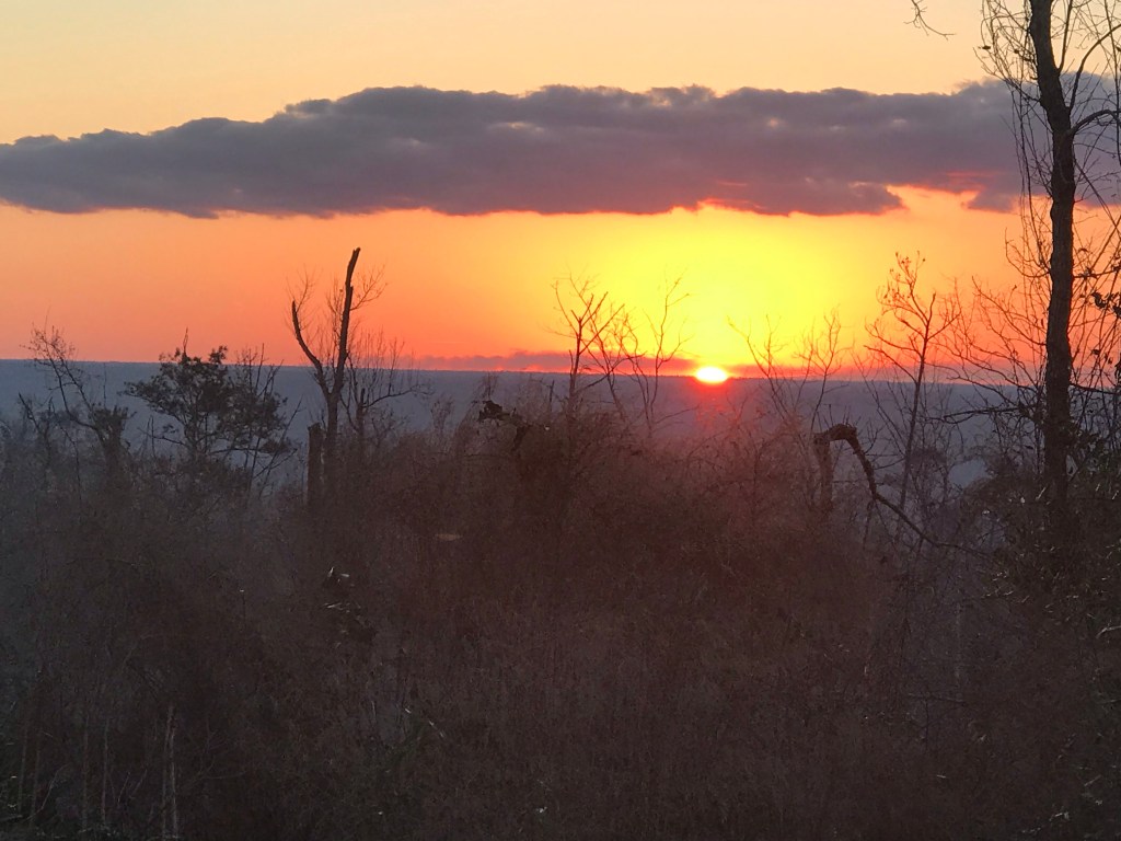 The second park we saw was Three Rivers State Park. Another Florida State Park devastated by Hurricane Michael, it’s located on Lake Seminole. Known for its excellent bass fishing, Lake Seminole is fed by the Chattahoochee and Flint Rivers. The Apalachicola River flows away from the lake to the Gulf of Mexico. We had lunch at the picnic area overlooking the lake. Nearby was another geocache that we hunted down and signed the log.