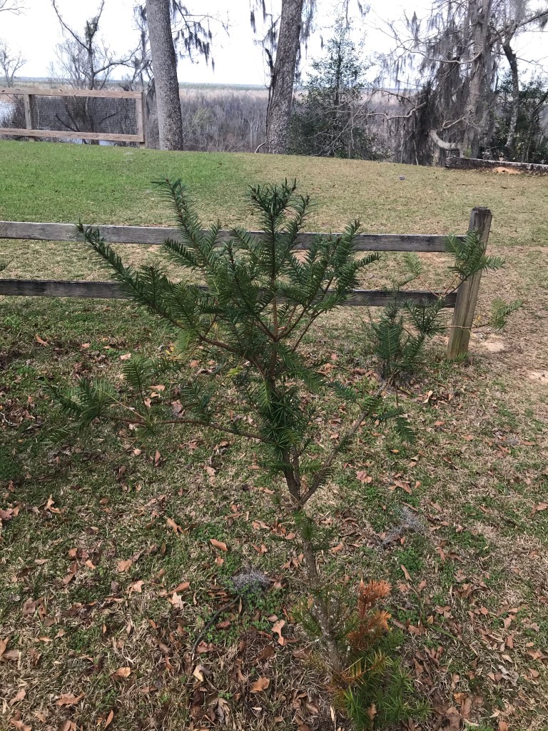 To work off our breakfast, we decided to do some more exploring. We went to the Gregory House. Although it was closed for tours, we walked around the outside and looked though the window. The view from the front porch across the river is to die for. It was here we saw some young Torreya trees planted near the mansion.