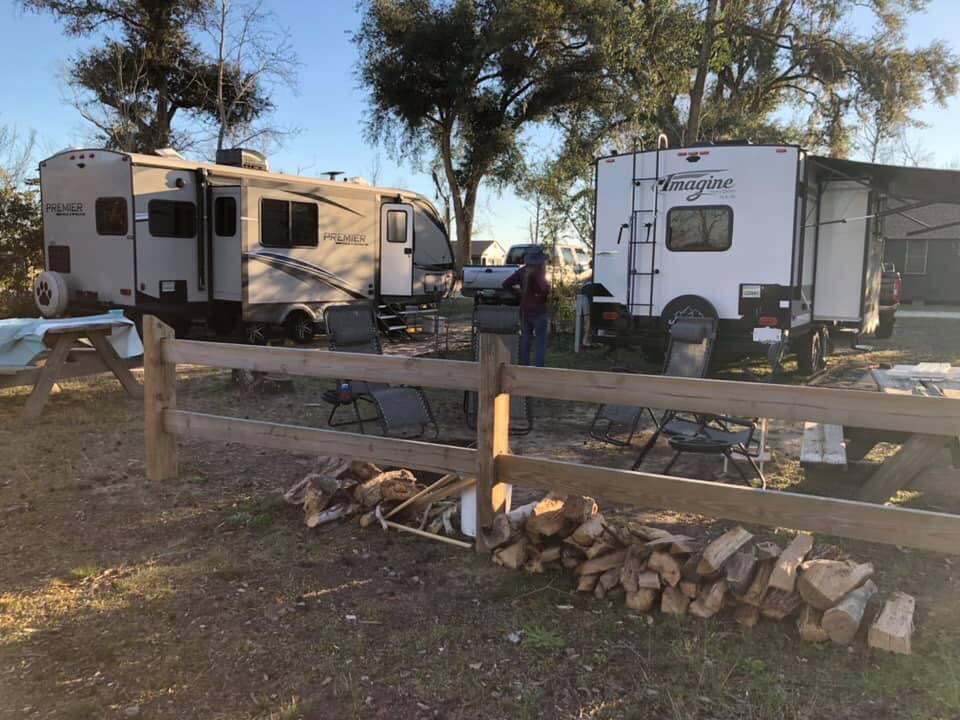 As I previously stated, the sites were very close to each other. I don’t feel Grammi and I are antisocial. We do enjoy talking to other campers and learning about their experience. But when you have to worry about tripping over the neighbor’s electric cord, or you can’t sleep at night because of the snoring sounds coming from the camper next door…then you might be a little too close. We utilized the space behind our campers to set up our outdoor area. We moved the fire ring and placed our chairs around it. We moved the picnic tables. We set up our Blackstone Griddle. There was even enough room to set up the bean bag toss game. Having two sites side by side made the experience more bearable.