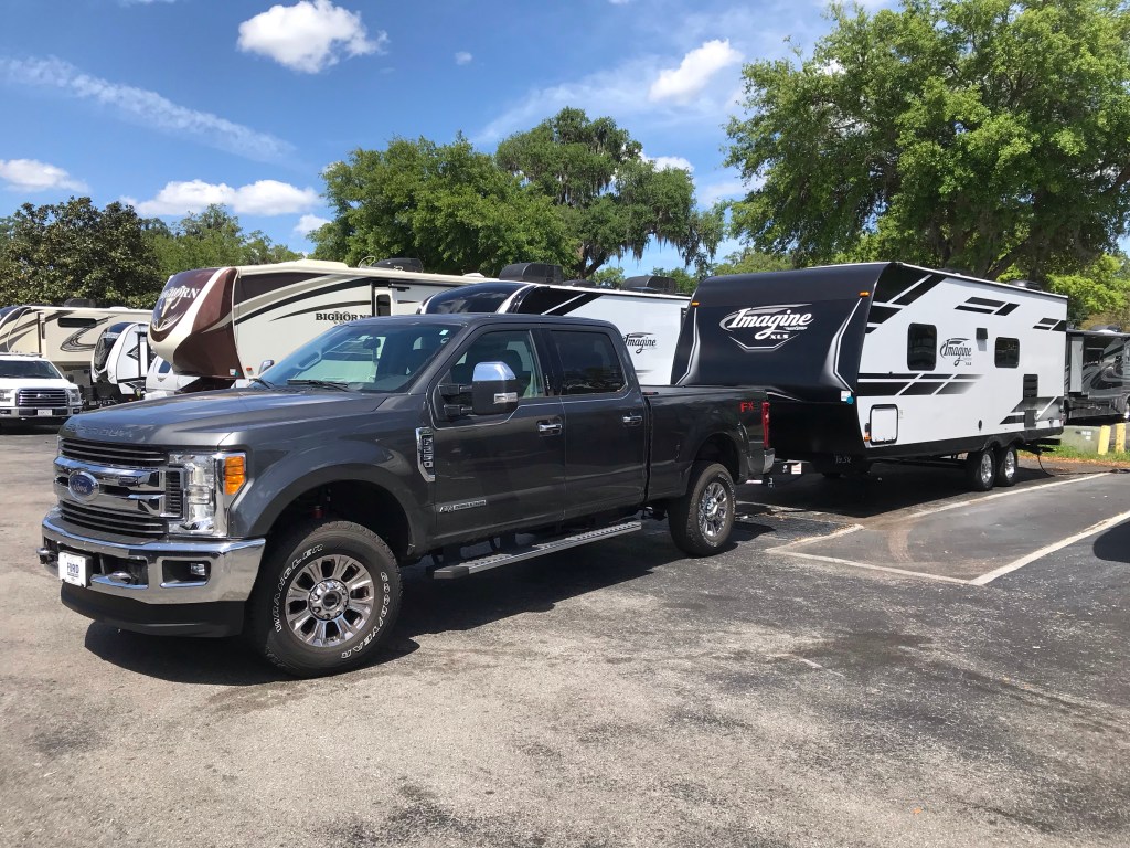 It was on a Sunday afternoon when we walked into our third dealership of the day. We’ve been to Lazy Days RV many times before. This time was different. The salesman took time to ask the right questions and he learned what we wanted. He didn’t try to upsell or convince us we needed something else. “I have something you might like, he said,” then showed us the Imagine XLS 22RBE. We were impressed. We had not seen that floor plan before. We really looked it over. It checked off most of the boxes. We had heard Grand Design had a good reputation for quality and customer service. So a week later we were towing our new camper off the lot.
