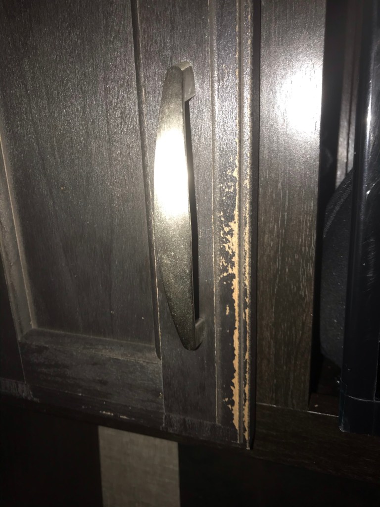 • The finish on the cabinets is rubbing off, especially above where grammi uses the Instant Pot. This is one of the fit and finish exception I was referencing. The steam from the Instant Pot has caused the finish to come off. That is not the only area where this is occurring though, but it is the worse spot.