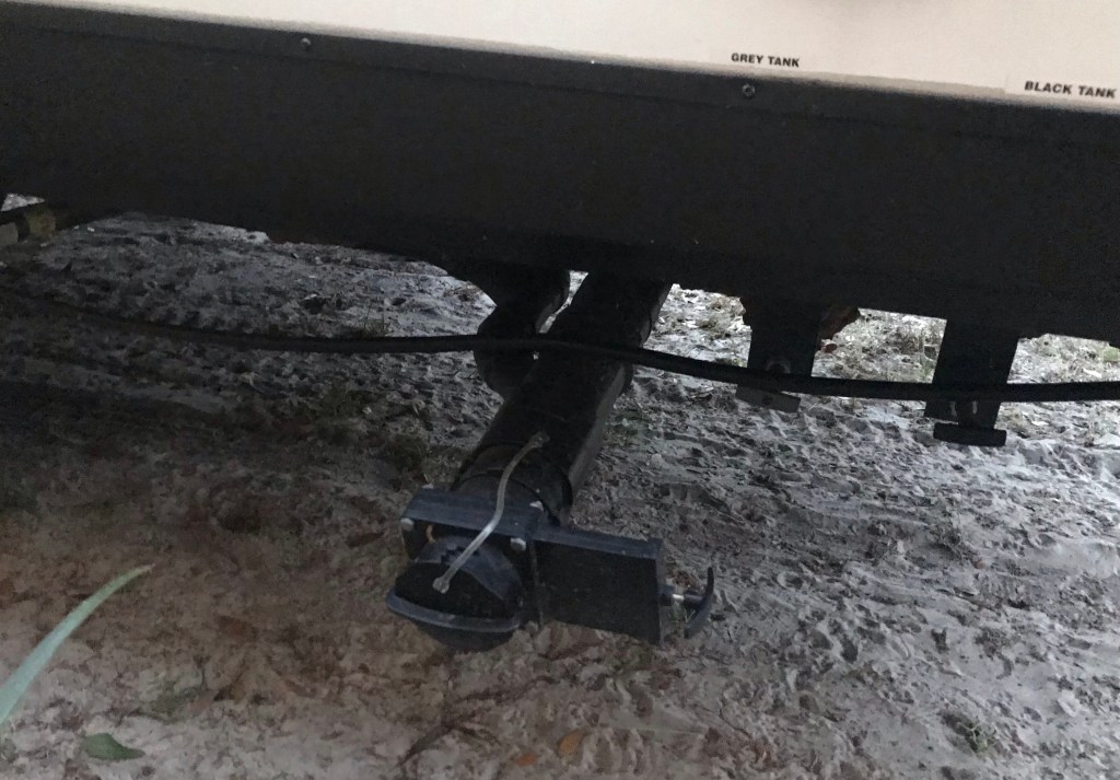 • The first issue occurred on my first attempted to dump the tanks. About a gallon or so of waste water gushed out when I removed the cap. Needless to say I was not happy. My hands, legs and shoes were soaked. The black water tank valve had leaked. I suppose I was lucky we weren’t using our black tank for black at that time if you know what I mean. I fixed the problem by installing an inline valve. Now I can remove the cap without fear.