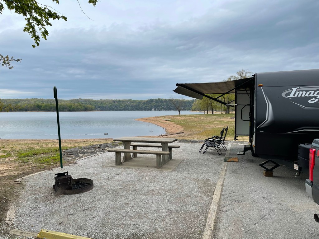 Located in the Ozark Mountains near Rogers, Arkansas, we once again had a beautiful Army Corp of Engineer campsite. This time at Horseshoe Bend Campground on Beaver Lake. We were right on the water. The view out our window across the lake was stunning.