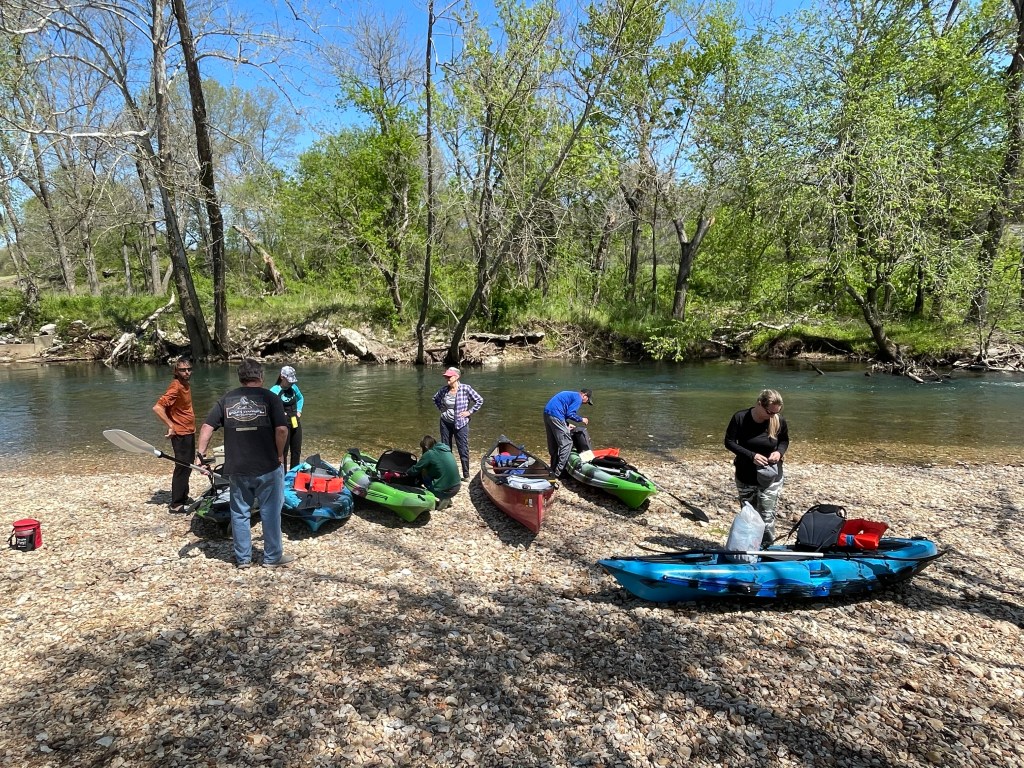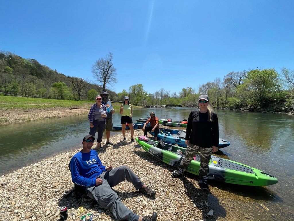 Canoe Trip on Little Sugar Creek — This was a glorious combination of sunshine, warm temperatures, good company, pristine water and scenic nature. The canoe and kayaks were provided by Bryan’s brother. Seasonal rains had Little Sugar Creek flowing more rapidly than normal making this an adventurous trip. Our skills were put to the test immediately when we encountered an 12”-18” drop over the rocks. Happy to report Grammi and I remained dry the entire trip, though there were times when I had my doubts. I can’t say the same for everyone who came along. Paddling downstream, we passed a couple of fishermen hoping to entice a bite from the skittish smallmouth bass we often saw hiding in the shadows. Grammi pointed to a bald eagle sitting on a nest in the top of a tall tree. We stopped on a sandbar in the middle of the creek to stretch our legs and eat our lunch. It was a perfect day.