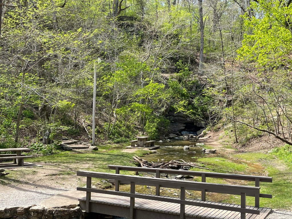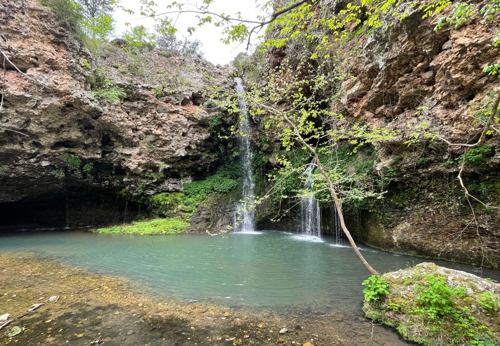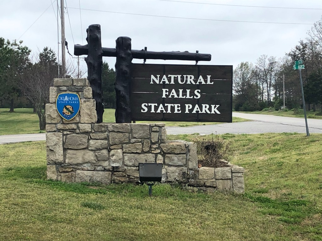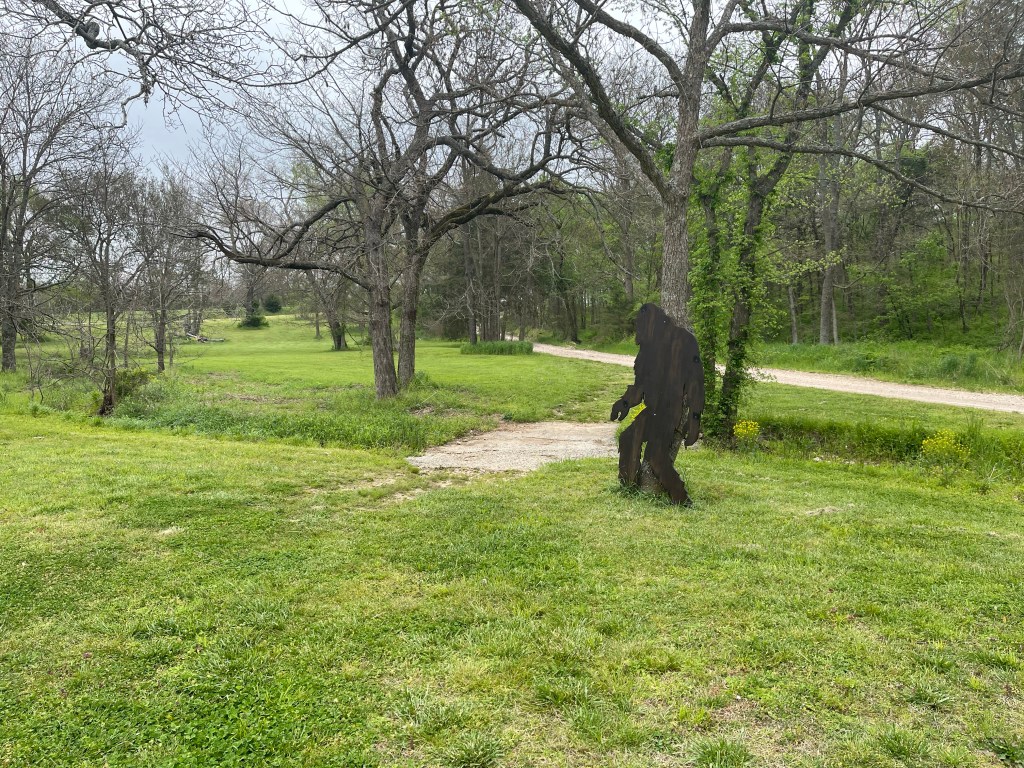 Natural Falls State Park — About an hour drive west, we crossed the state line into Oklahoma to visit Natural Falls State Park where we took a short hike to Dripping Springs Scenic Waterfalls. A waterfall in Oklahoma was not something I would have expected to see, so I was eager to make the trip. Down in a gorge was a lovely waterfall splashing into a pool of water. I was happy we came. It was like an oasis. We took a hike on one of the trails through the park and astonishingly had a Bigfoot sighting. A closer look revealed we were in no danger. 😉