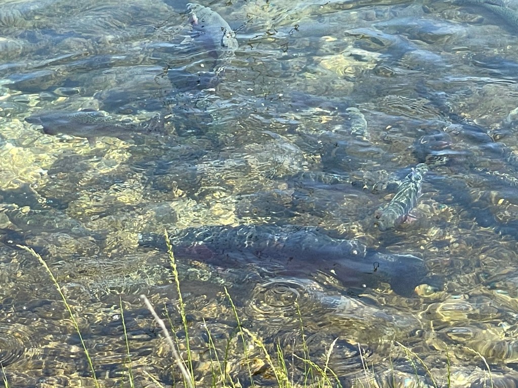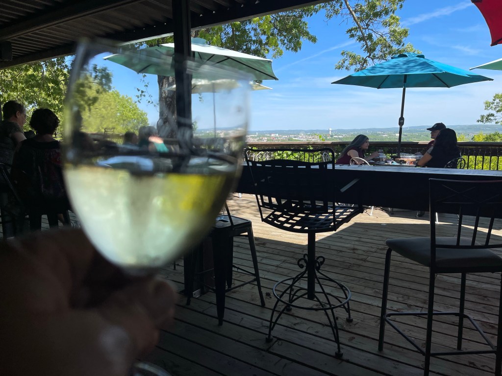 Afterward, we walked off breakfast among the blossoming dogwood trees at Table Rock State Park where there are a variety of trails to explore. Down at the lake, we walked out on a dock. The water was clear and we saw trout hiding in the shadows. We drove to the trout hatchery on the lower side of the dam to learn how they raise and stock the lake with trout for the sport fishermen. Mid-afternoon was when we went to Lindwedel Winery to sit on their terrace and enjoy the scenic panoramic view and a bottle of wine. We ended our day around a campfire with everyone telling stories while roasting marshmallows. Can life get any better?