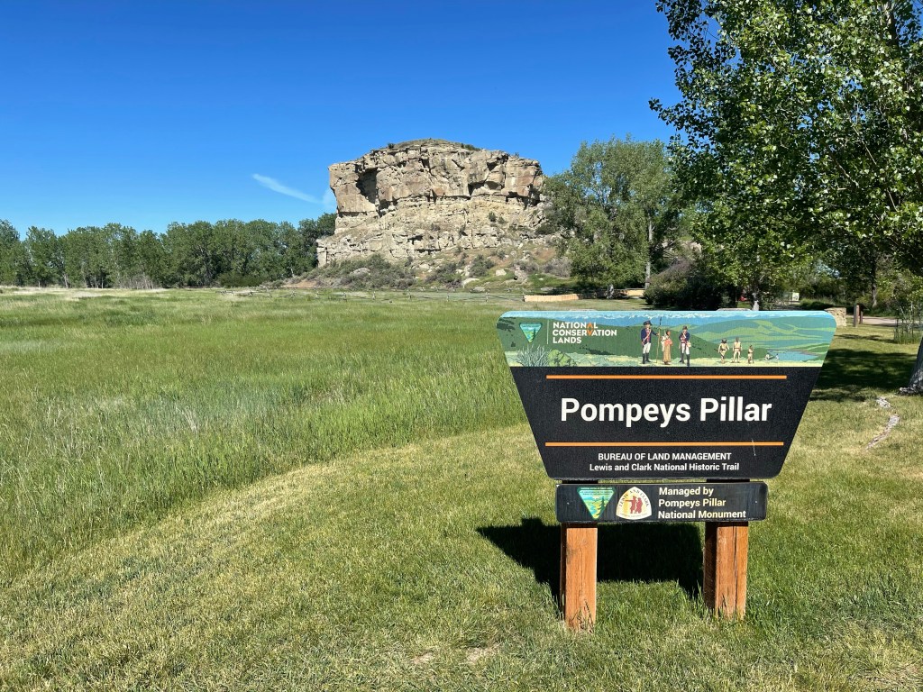 Sitting north of Interstate 94 along the Yellowstone River in Montana is a rock outcropping called Pompeys Pillar. The significance of this rock formation can be traced back hundreds of years as a landmark and gathering place for Native American tribes. A natural ford across the Yellowstone River lies in the shadow of Pompeys Pillar. Hunting parties camped nearby waiting for the buffalo migration to cross the ford where they could more easily take their game.