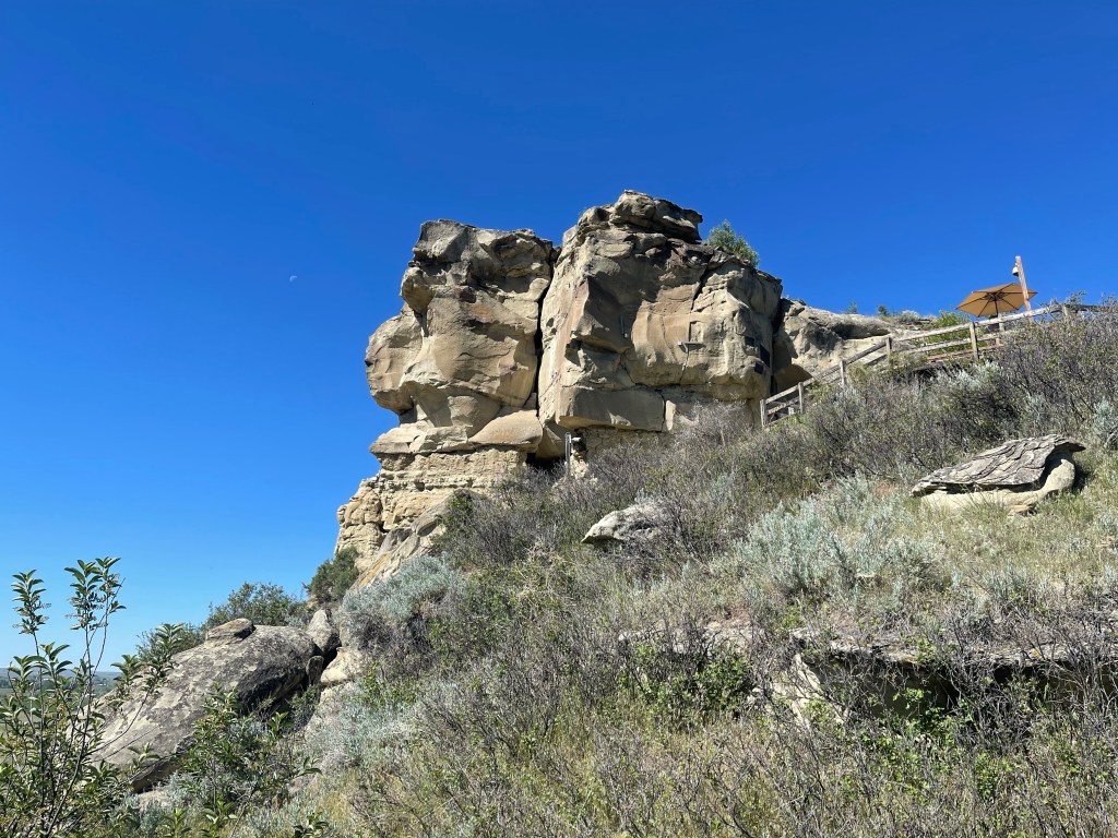 Coffee, breakfast and a quick look at the phone to confirm we had no cell service, then back on the road. Yesterday, on the way to Huntley Project, we saw a sign for a national monument. It was something we didn’t expect to see. It was not on our radar and we were surprised when we passed the brown sign. There was time this morning to go back and check it out.