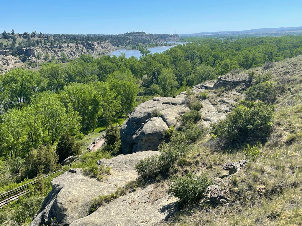 There is an impressive modern visitor center and museum with interpretive displays, and a gift shop with the typical national park wares. We walked a nature trail going past the Yellowstone River. We climbed to the top of Pompeys Pillar to witness for ourselves Clark’s “most extensive view in every direction”. Our climb was made easier than Clark’s ascent with the use of stairs. It was indeed a wonderful view.