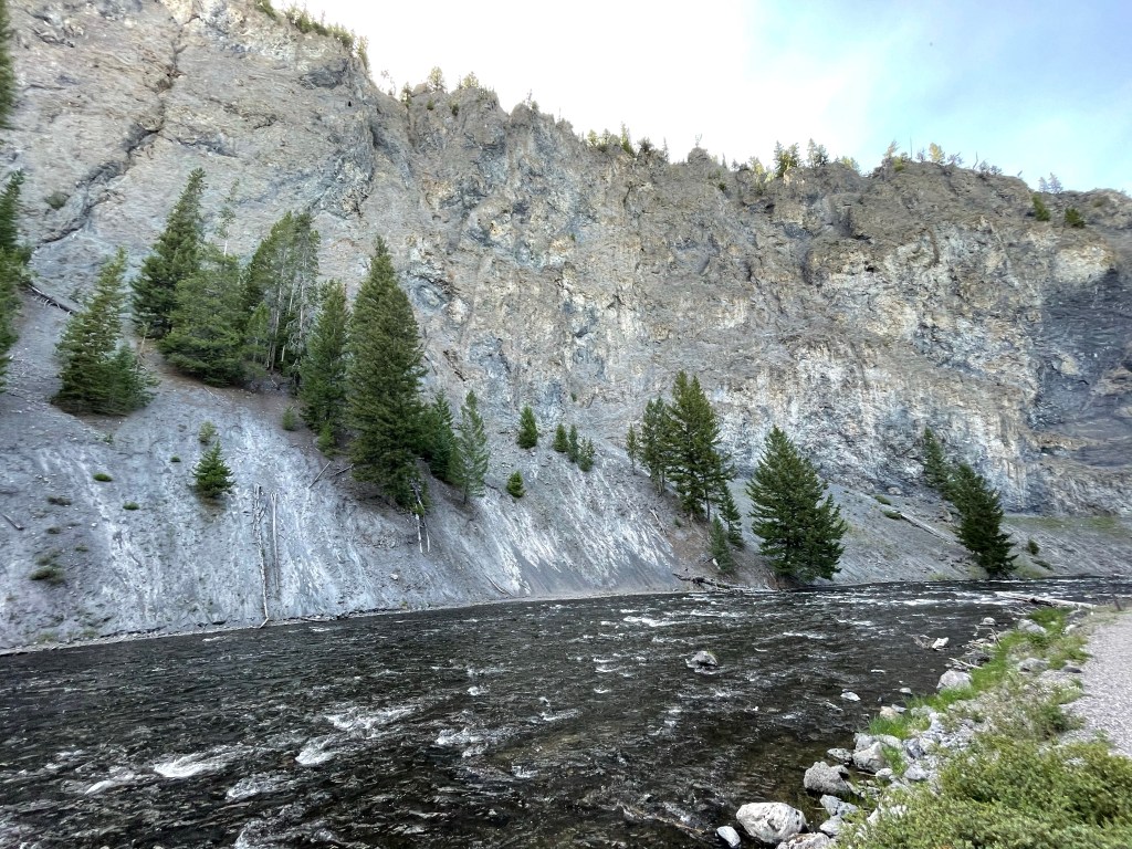 First we turned onto Firehole Canyon Drive. Wow, we were glad we didn’t miss this hidden gem. It’s a two mile oneway road through the Firehole Canyon and pass the Firehole Falls. It is where one of only two designated swimming areas in the park is located, but it was temporally closed by the park service during our visit due to high water and swift currents. But hey, the waterfall was awesome.