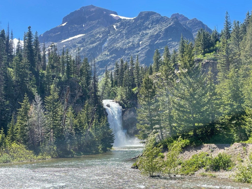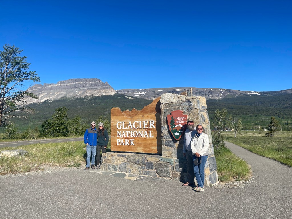 “Unfortunately, the middle of the Going to the Sun Road was closed, so in order to see the East side of the park we had to make a 2-hour trek all the way around the park. Due to limited parking, this meant we had to wake up super early (4:30 AM) to get there before everyone else. The temperature was in the 30s, and surprisingly enough, the sun was already starting to light up the wilderness so we got some amazing sunrise shots. We arrived on the East side of Glacier, took our commemorative pictures at the sign and hit the visitor center before starting our first hike. We started down the trail to St. Mary’s Falls, about a 6-mile round trip. Layers started to come off as the sun slowly heated up the trail. We were greeted with two amazing waterfalls – and on the way back two young deer were on the trail. It was a narrow path with no where to go. We all slowed down and moved as far back as we could to let them pass. It was really quite awesome. We traveled down the road and were mesmerized by Jackson Glacier. As we continued on our journey, we went south toward Two Medicine, passing Blackfoot, Logan and Red Eagle Glaciers. We did one final hike to Appistoki Falls before heading home. It was a glorious day!!”