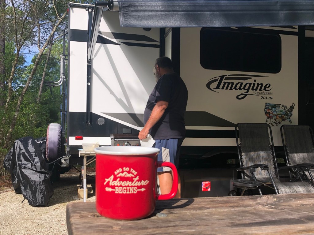 While at Santee State Park, we were joined by our close friends Brent and Karen. After seeing all the fun Grammi and I are having traveling in our camper, they decided to buy a travel trailer too. Their delivery date was pushed back more than once, but after waiting for four months, they finally picked it up just two days ago from Lazy Days in Tampa.