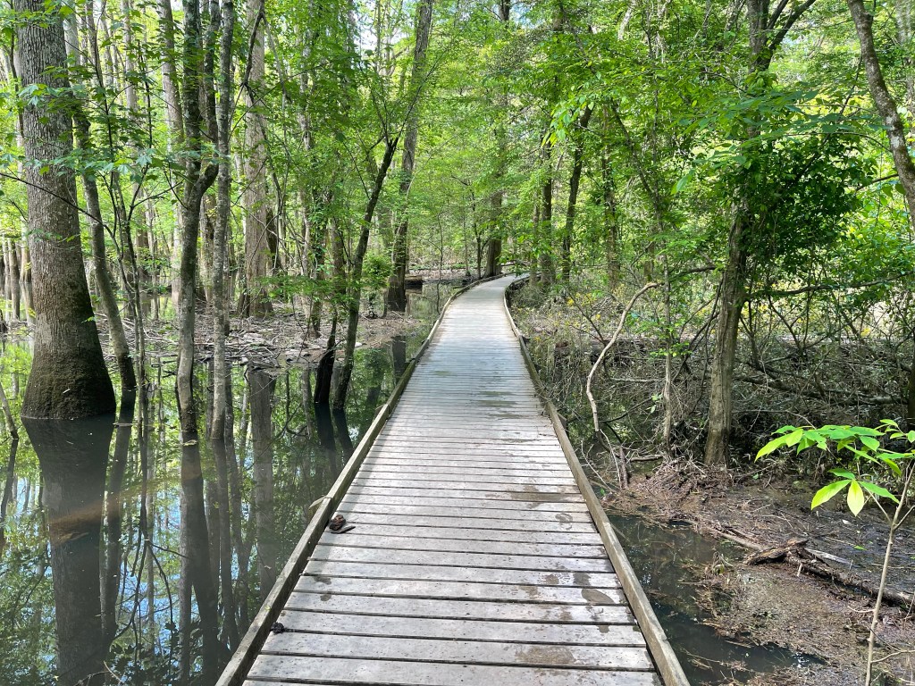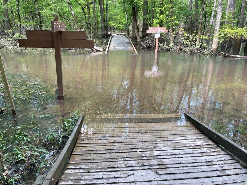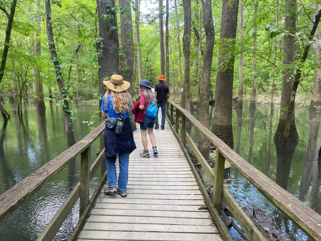 It was a forty-five minute drive to Congaree National Park and we were up and headed out much earlier than the day before. When we arrived at the Harry Hampton Visitor Center, I noticed the small parking lot was about half-full or half-empty—depending on your outlook. There was no overcrowding at this national park. A ranger stationed outside provided assistance and answered questions. We learned that due to recent rains, the bottomland was flooded. Many of the hiking trails were closed.