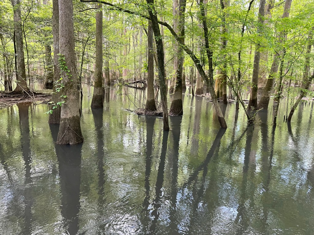 Only 3½ hours away from the Great Smoky Mountains, the most visited national park, Congaree National Park is among the least visited national parks in the United States. It is ranked fifth as the least visited national park in the lower forty-eight states. I suppose there is a reason why it is on the list. However, it is not because it is remote and hard to get to. I found it easy to get to. It is not because it does not possess a unique beauty only found in an undisturbed flooded virgin forest. It is not because it is a new national park. It was dedicated in 2003. I think, other than the fact there is no RV camping, cabins or lodge to stay at, it is because there is no main attraction like a waterfall, canyon, or mountain range. There is not a massive cave nor a spectacular rock formation. There are no herds of bison or elk. There is not an amazing architecture feature like a bridge or an arch. Though it is a pretty place, there is not that iconic feature that draws people in. It is simply a flooded forest. Albeit the largest old growth bottomland hardwood forest in North America.