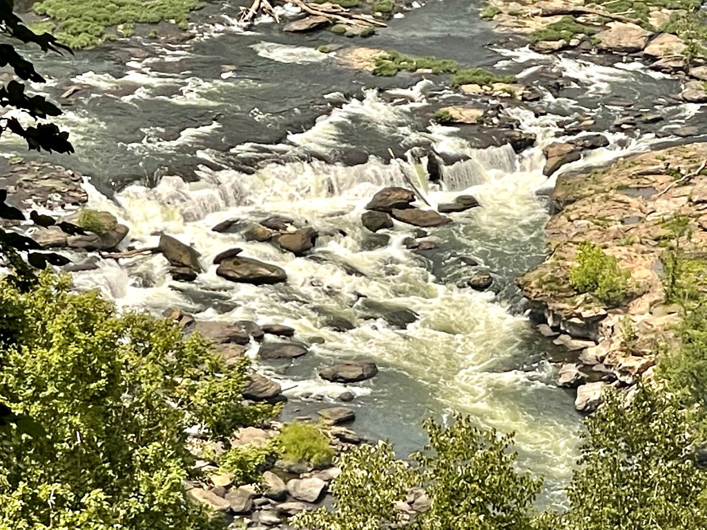A couple of days later we drove to the south end of the national park to see Sandstone Falls. Recommended as a “not to miss sight” by the park ranger, we had it on our list of things to see. It was a 40-minute drive from the Sandstone Visitor Center through the town of Hinton, crossing a bridge, then back down the other side of the river. Shocking when you consider the parking area for the falls is less than two miles away from the visitor center as the crow flies.