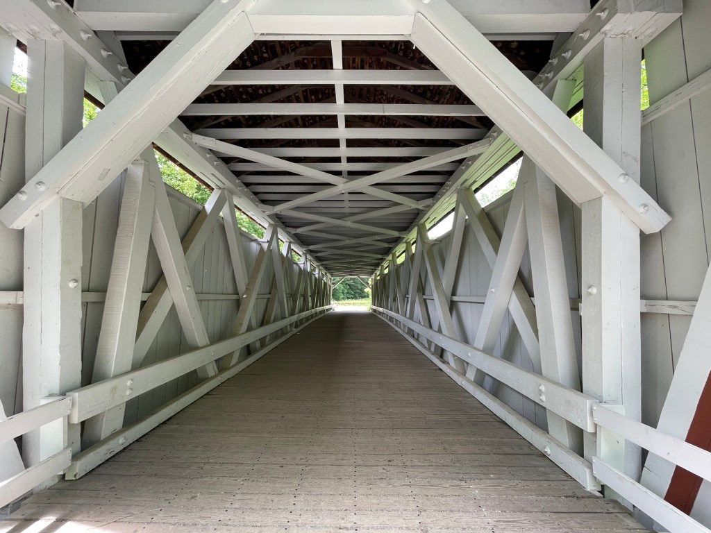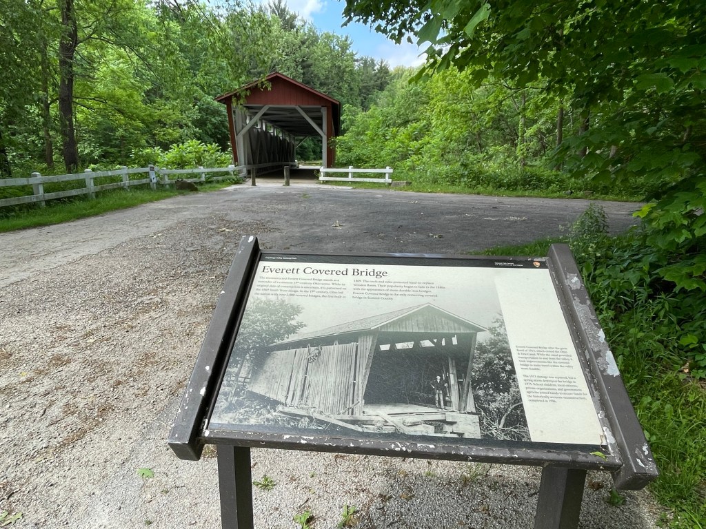 Ohio once had over 2,000 covered bridges in the 1800s. Everett Covered Bridge is the last remaining covered bridge in Summit County, a historic reminder of the days when wooden bridges were prevalent. The picturesque red structure is a popular destination for visitors, and we found it fascinating.
