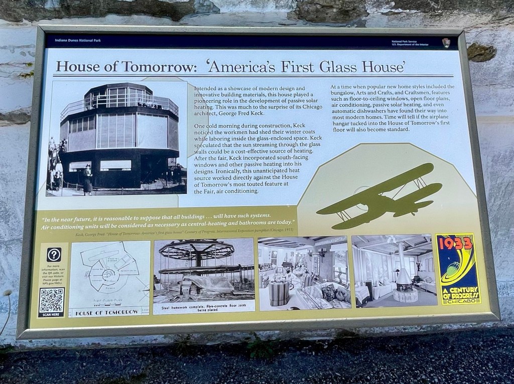 From the visitor center, we drove to the Century of Progress Historic District, a unique and historically significant area located along Lake Michigan. This district is renowned for its collection of homes originally constructed for the 1933-1934 Chicago World’s Fair, also known as the Century of Progress Exposition. These homes were designed to showcase modern architectural designs, innovative building materials, and cutting-edge home technologies of the era. After the fair, the houses were relocated to their current site, near the Indiana Dunes National Park.