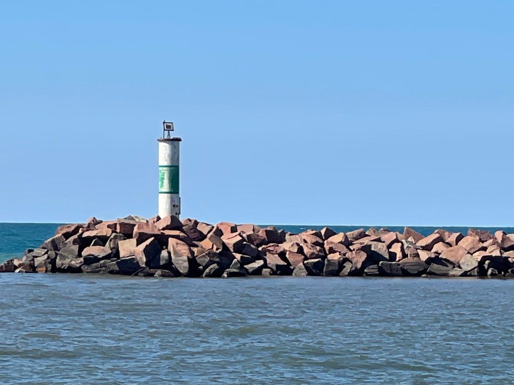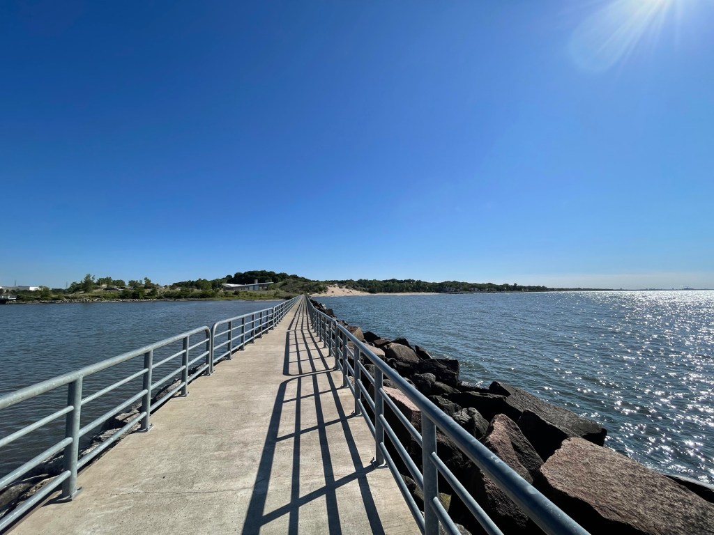 Continuing our journey southward, we arrived at Portage Lakefront and Riverwalk. Once home to a steel mill for many years, it is now part of the national park, offering a space for outdoor recreation. Driving past some industrial buildings to get to the place served as a reminder of the region’s past. From here, one can behold the stunning views of the lake and the Chicago skyline across the water. The park also features picturesque sand dunes, providing opportunities for nature walks. We ventured out on the fishing pier for the best perspective to admire the dunes and the lighthouse.