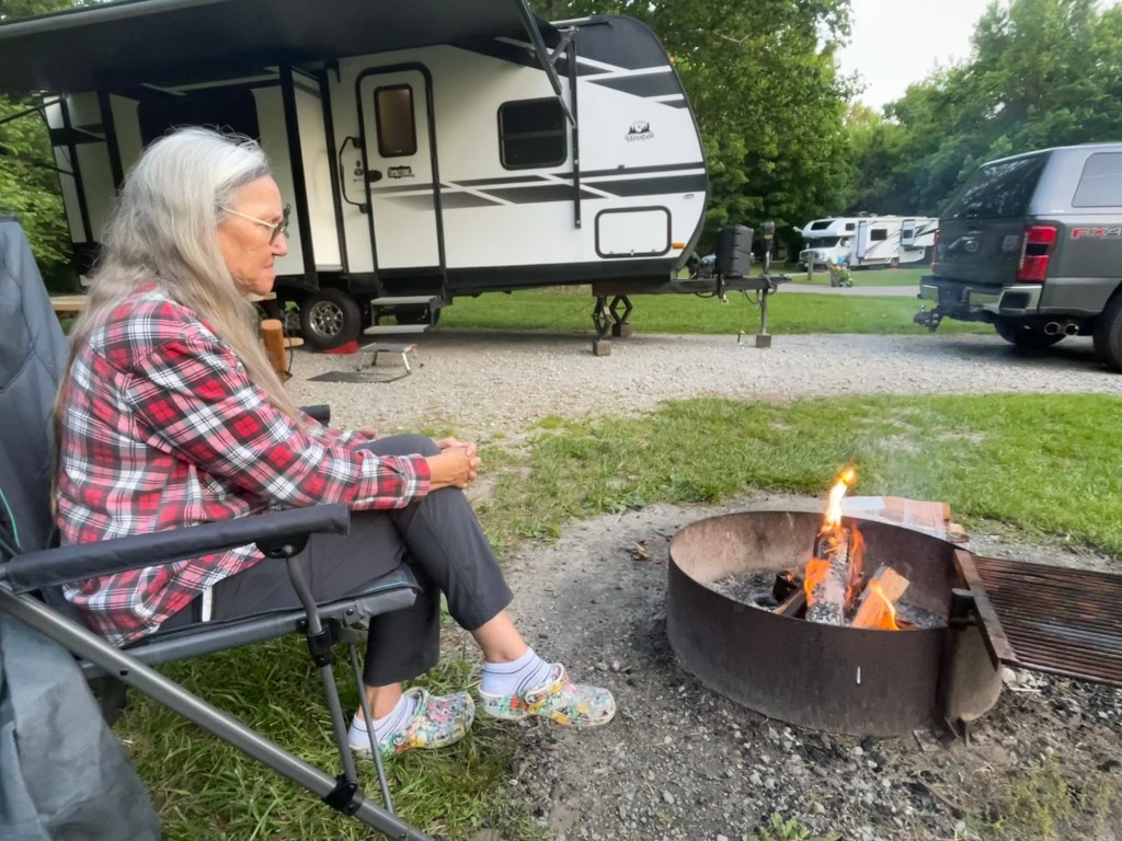 After we arrived and set up, we were surprised to see Chuck and Cassie pull up. We met them back at Big Bone Lick State Park in Kentucky, where they were part of the helpful folks who came to our rescue when our camper’s A-frame broke. We had told them we were scheduled to arrive here today, and since they live nearby, they came to check on us. They were curious if we made it back on the road and wanted to see the repair that was done. We sat around and chatted for a couple of hours. They gave us all the tips on the best places to see in the area and recommended their favorite restaurants. It was nice to have them check on us. One lesson we’ve learned on the road is that there are friendly people everywhere you go.