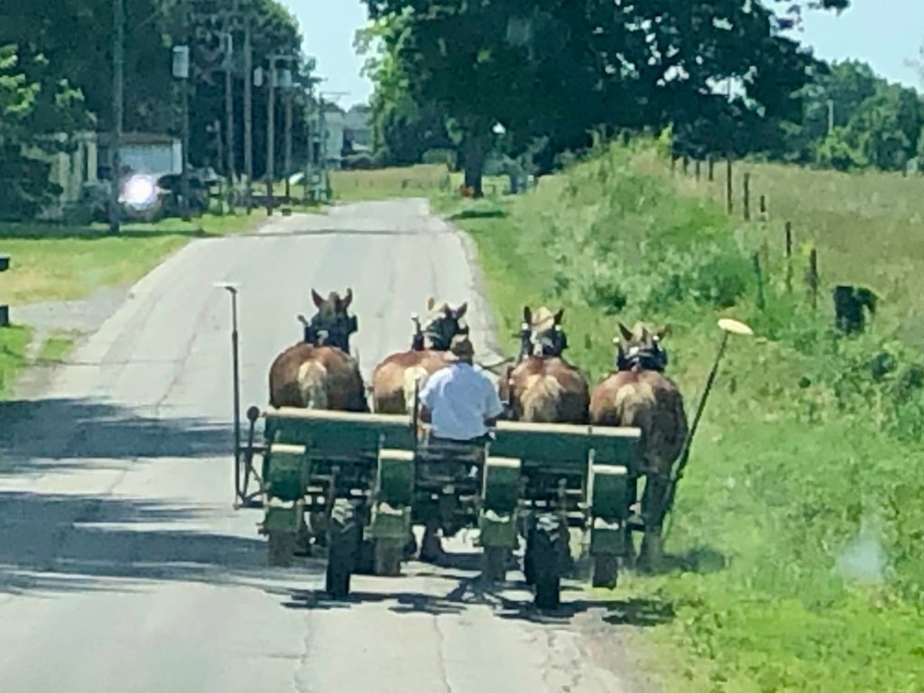 Venturing beyond the town limits, we embarked on a scenic drive through the countryside, where sprawling farmlands and rolling hills stretched as far as the eye could see. It was here that we saw first-hand the essence of Amish life. We encountered countless families traveling the backcountry roads in their horse-drawn buggies. We passed fields being tilled with plows pulled by a team of horses and gardens tended by women and barefoot children.