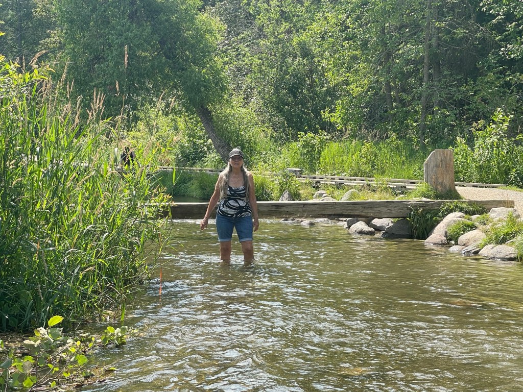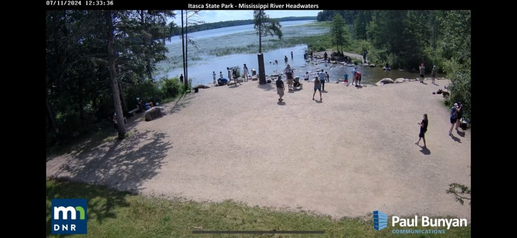 The park offers fantastic biking trails that crisscross through its beautiful landscape. Nearly everywhere we went, we traveled by bike, and of course, we had to ride to the headwaters first. It was the busiest spot in the park, drawing crowds eager to stand in the Mississippi River. We noticed a sign indicating a live camera feed, so we texted our kids to let them know. Before long, they texted back, saying they could see us waving. How cool is that?